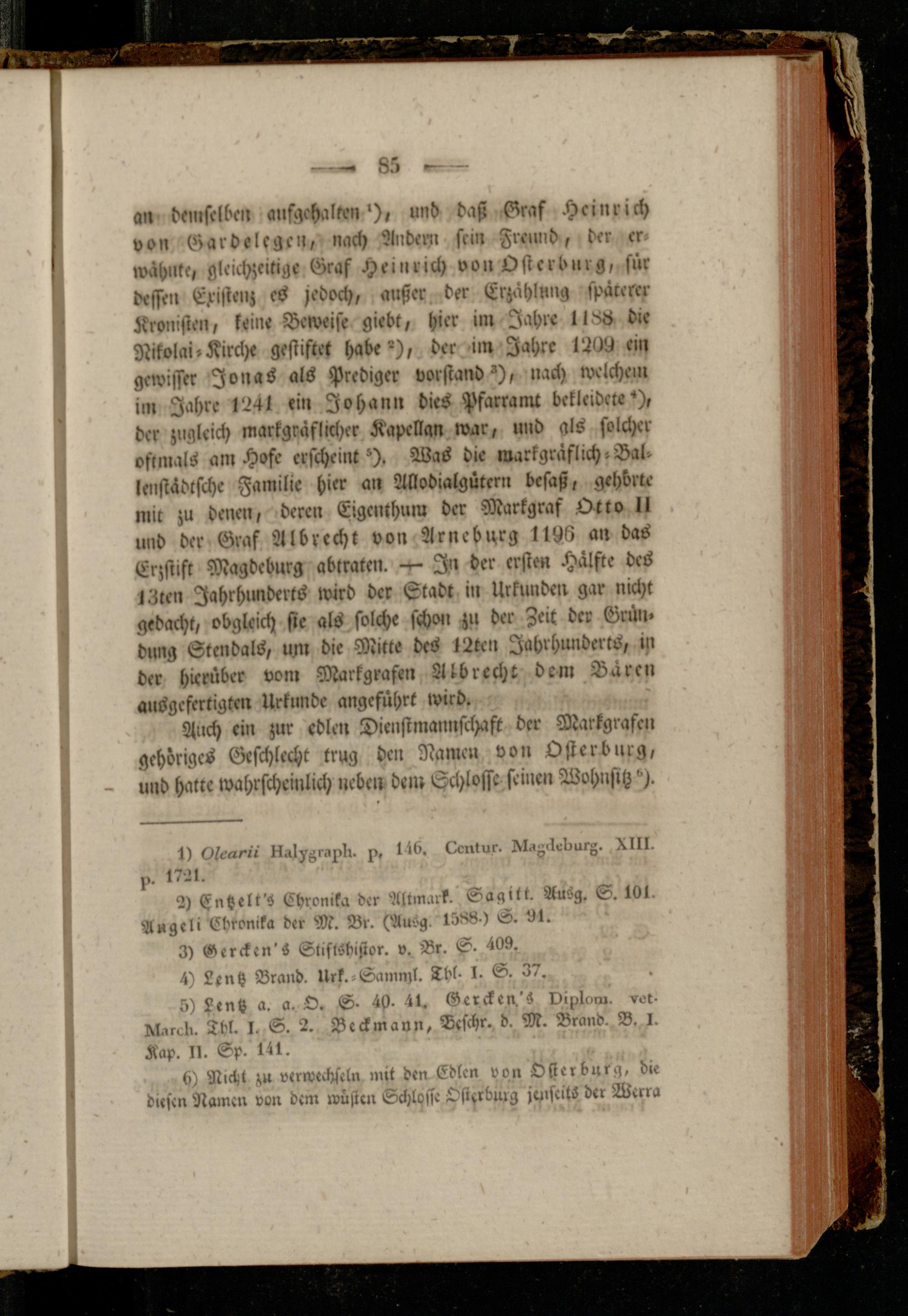 an demselben emfgehalten'), und daß Graf Heinrich von Garbelcgcn, nach Andern sein Freund, der er wähnte, gleichzeitige Graf Heinrich von Üstcrbnrg, für dessen Existenz cs jedoch, außer der Erzählung späterer Kronisten, keine Beweise giebt, hier inr Jahre 1l86 die Nikolai»Kirci)« gestiftet habe"), der iin Jahre 1209 ein gewisser Jonas als Prediger Vorstand*), nach welchem im Jahre 1241 rin Johann dies Pfarramt bekleidete"), der zugleich markgräflicher Kapellan war, und gls solcher oftmals am Hofe erscheint*). Was die markgräflich »Dal- lrnstädtsche Familie hier an Allodialgütern besaß, gehörte mit zu denen, deren Eigcnthuiu der Markgraf Otto II und der Graf Albrccht von Arncburg 1196 an das Erzstift Magdeburg abtraten. In der ersten Hälfte des 13kcn Jahrhunderts wird der Stadt in Urkunden gar nicht gedacht, obgleich sie als solche schon zu der Zeit der Grün« düng Stendals, um die Mitte des 12ten Jahrhunderts, in der hierüber vom Markgrafen Albrccht dem Baren ausgefertigtcn Urkunde angeführt wird.