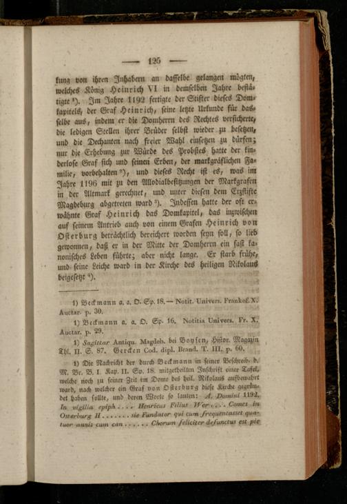 1) Oie Nacbricht der durck Beckmann in seiner Beschreib, d. M. Br. B. 1 Kap. H. Sv. 18. mitgetheilten Inschrift einer Tafel, welche noch zu seiner Zeit im Dome deS heil. Nikolaus aufbewahrt ward, nach welcher ein Graf von Ostcrburg diese Kirche gegründet haben sollte, und deren Worte so lauten: /)o,m'nr 1192.
