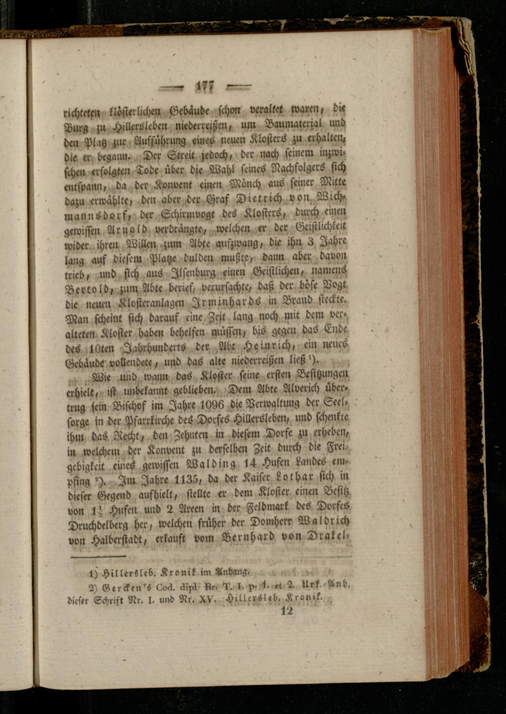 Wie und wann das Kloster seine ersten Besitzungen erhielt, ist unbekannt geblieben. Dem Abte Alverich über« trug sein Bischof im Jahre 1096 die Verwaltung der Seel» sorge in der Pfarrkirche des Dorfes Hillersleben, und schenkte ihm das Recht, den Zehnten in diesem Dorfe zu erheben, in welchen» der Konvent zu derselben Zeit durch die Freigebigkeit eines gewissen Walding 14 Hufen Landes empfing ')> Im Jahre 1135, da der Kaiser Lothar sich in dieser Gegend aufhielt, stellte er dem Kloster einen Besitz von 1.1 Hufen und 2 Areen in der Feldmark des Dorfes Druchdelberg her, welchen früher der Domherr Waldrich von Halberstadt, erkauft vom Bernhard von Drakel-