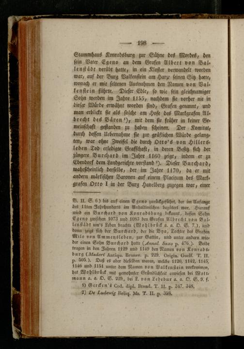 tragen in den Jahren 1129 und 1149 den Namen von Konradt« bürg (tlckackeee ^ntigu. 8r»n»v- p. 229. Origin. Ouolk. I . 11. 1 > 505 ). Daß es aber dieselben waren, welebe 1120, 1142, 1145, 1146 und 1151 unter dem Namen von Valkenstein Vorkommen, hat Wohlbrück mit gewohnter Gründlichkeit erwiesen bei Weltmann a. a. O. S. 229., bei L. von Ledebur a. a. O. S. 9. f.