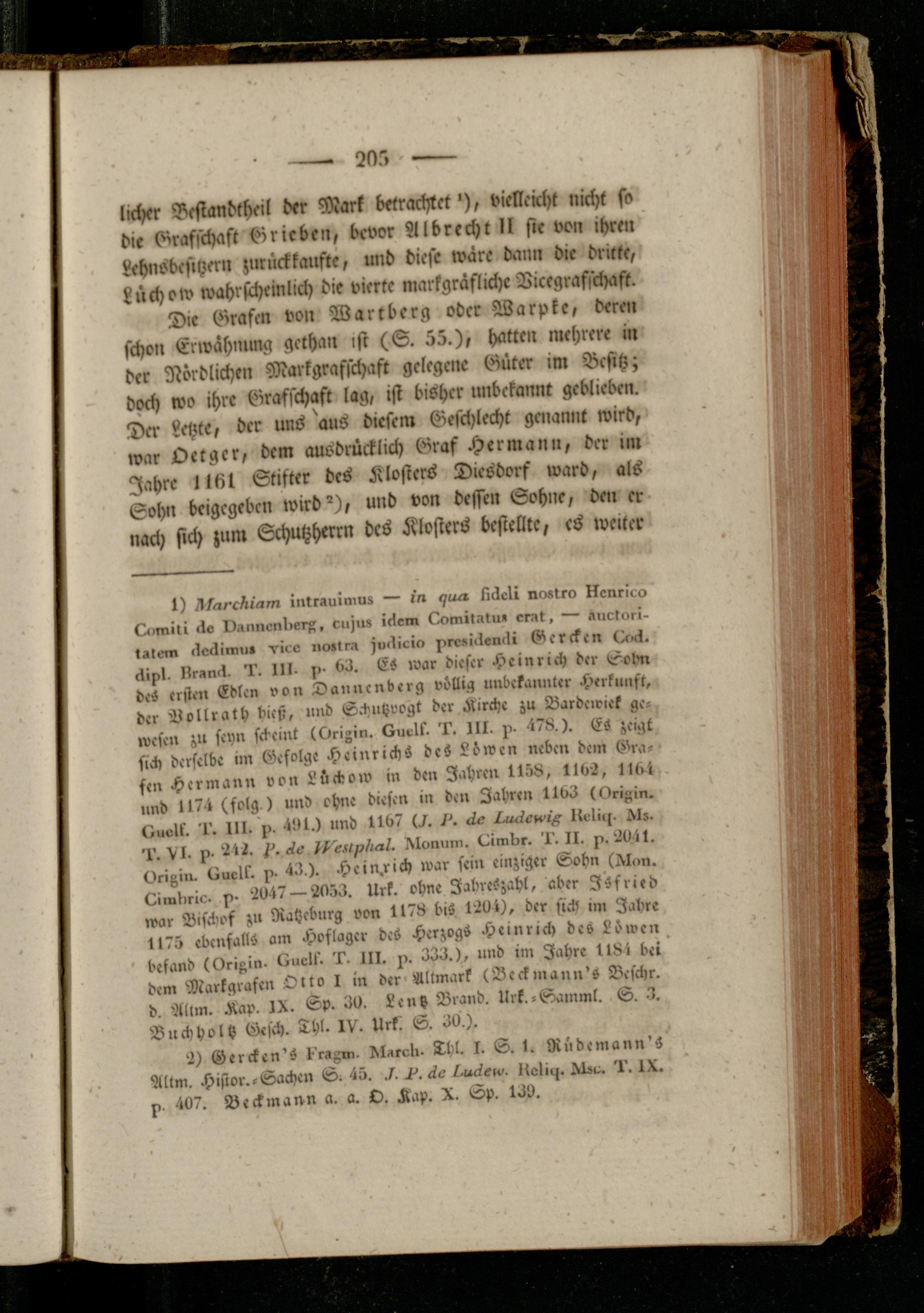 Die Grafen von Wartberg ober Warpke, deren schon Envähiilliig gethan ist (S. 55.), hatten mehrere in der Nördlichen Markgrafschaft gelegene Güter im Besitz; doch wo ihre Grafschaft lag, ist bisher unbekannt geblieben. Der Letzte, der uns aus diesem Geschlecht genannt wird, war Oetger, dem ausdrücklich Graf Hermann, der im Jahre ll6k Stifter des Klosters Diesdorf ward, als Sohn beigegeben wird"), und von dessen Sohne, den er nach sich zum Schutzherrn des Klosters bestellte, cs weiter