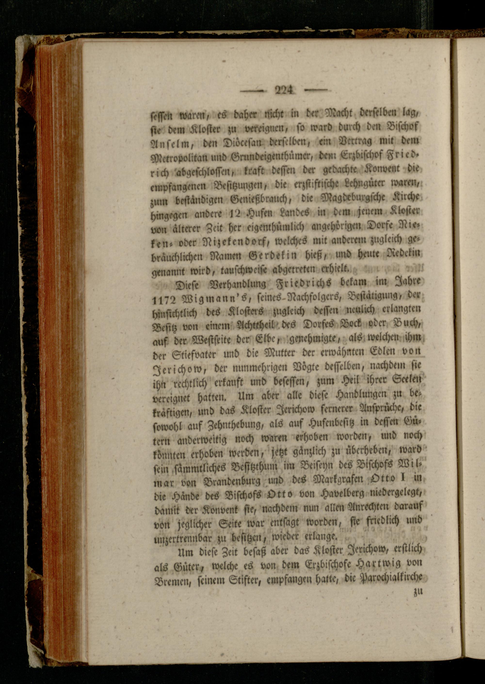 Um diese Zeit besaß aber das Kloster Jerichow, erstlich als Güter, welche es von dem Erzbischöfe Hartwig von Bremen, seinem Stifter, empfangen hatte, die Parochialkircl-e