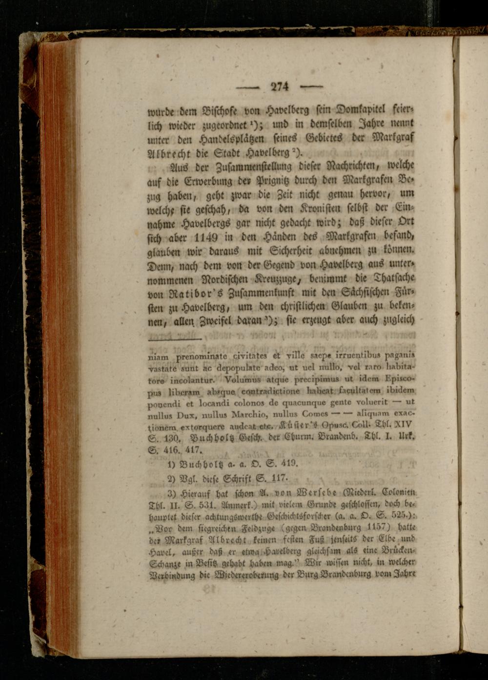 3) Hierauf hat schon A. von Wersebe (Nieder!. Colonien Thl- II. S. 531. Anmerk.) mit vielem Grunde geschloffen, doch behauptet dieser achtungSwerth« Geschichtsforscher (a. a. O. S. 525.):. „Vor dem siegreichen Feldzug« (gegen Brandenburg 1157) hatte der Markgraf Albrecht keinen festen Fuß jenseits der Elbe und Havel, außer daß «r etwa, Havelberg gleichsam als «ine Brucken- Schanze in Besitz gehabt haben mag." Wir iviffen nicht, in welcher Verbindung di« Wicdereroberung der Burg Brandenburg von» Jahre
