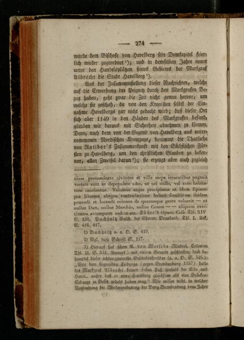 Aus der Zusammenstellung dieser Nachrichten, welche auf die Erwerbung de» Prignitz durch den Markgrafen Be« zug haben, geht zwar die Zeit nicht genau hervor, um tvelchr sie geschah, da von den Kronisten selbst der Ein» nähme Havelbcrgs gar nicht gedacht wird; daß dieser Ort sich aber 1149 in den Händen des Markgrafen befand, glauben wir daraus mit Sicherheit abnchmcn zu können. Denn, nach dem von der Gegend von Havelberg aus unter» nommcnen Nordischen Kreuzzuge, benimmt die Thatsache von Ratibor's Zusammenkunft mit den Sächsischen Für, sten zu Havelberg, um den christlichen Glauben zu bcken» nen, allen. Zweifel daran '); sic erzeugt aber auch zugleich