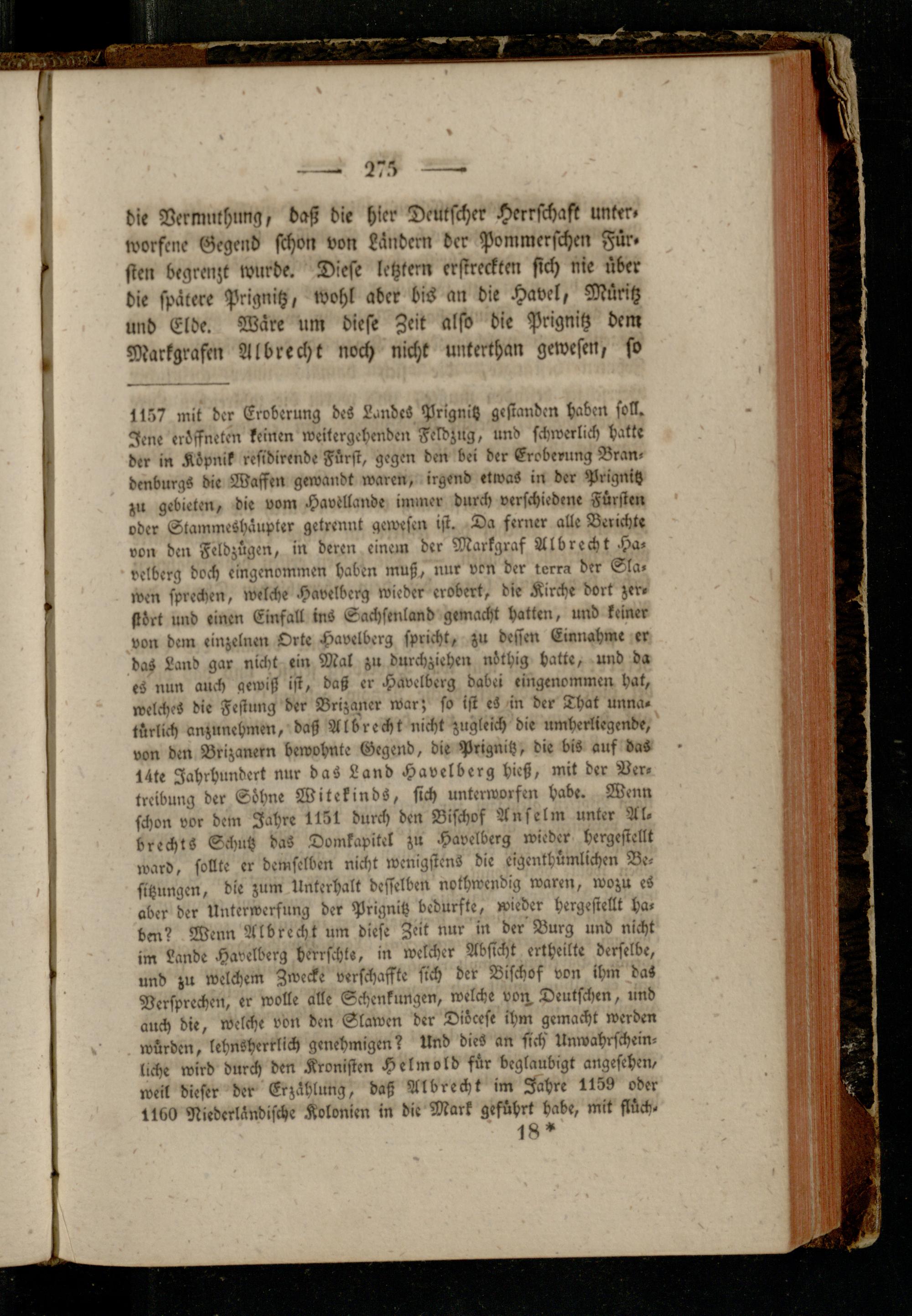 1l57 mit der Eroberung des Landes Prignitz gestanden haben soll. Jene «röffneten keinen weitergehenden Feldzug, und schwerlich hatte der in Köpnik residirende Fürst, gegen den bei der Eroberung Bran> denburgS die Waffen gewandt waren, irgend etwas in der Prignitz zu gebieten, die vom Havillande immer durch verschiedene Fürsten oder Stammeshäupter getrennt gewesen ist. Da ferner alle Berichte von den Feldzügen, in deren einem der Markgraf Albrecht Ha. velbcrg doch eingenommen haben muß, nur von der terra der Slawen sprechen, welche Havelbcrg wieder erobert, die Kirche dort zer. stört und einen Einfall ins Sachsenland gemacht hatten, und keiner von dein «inzelne» Orte Havelberg spricht, zu dessen Einnahme er das Land gar nicht «in Mal zu durchziehen nöthig hatte, und da «S nun auch gewiß ist, daß er Havelberg dabei eingenommen hat, welches die Festung der Brizaner war; so ist eS in der That unnatürlich anzunehmen, daß Albrecht nicht zugleich die umherliegende, von den Brizanern bewohnte Gegend, die Prignitz, die bis auf daS 1-tte Jahrhundert nur das Land Havelberg hieß, mit der Vertreibung der Söhne WitekindS, sich unterworfen habe. Wenn schon vor dem Jahre llal durch den Bischof Anselm unter Albrecht S Schutz daS Domkapitel zu Havelberg wieder hergestellt ward, sollte er demselben nicht wenigstens die eigenthümlichen Besitzungen, die zum Unterhalt desselben nothwendig waren, wozu es aber der Unterwerfung der Prignitz bedurfte, wieder hergestellt haben? Wenn Albrecht um diese Zeit nur in der Burg und nicht im Lande Havelberg herrschte, in welcher Absicht ertheilte derselbe, und zu welchem Zwecke verschaffte sich der Bischof von ihm das Versprechen, er wolle alle Schenkungen, welche von. Deutschen, und auch die, welche von den Slawen der Diöcese ihm gemacht werden würden, lehnsherrlich genehmigen? Und dies an sich' Unwahrscheinliche wird durch den Kronisten Helmold für beglaubigt angesehen, weil dieser der Erzählung, daß Albrecht im Jahre 1159 oder 1160 Niederländische Kolonien in die Mark geführt habe, mit flüch.