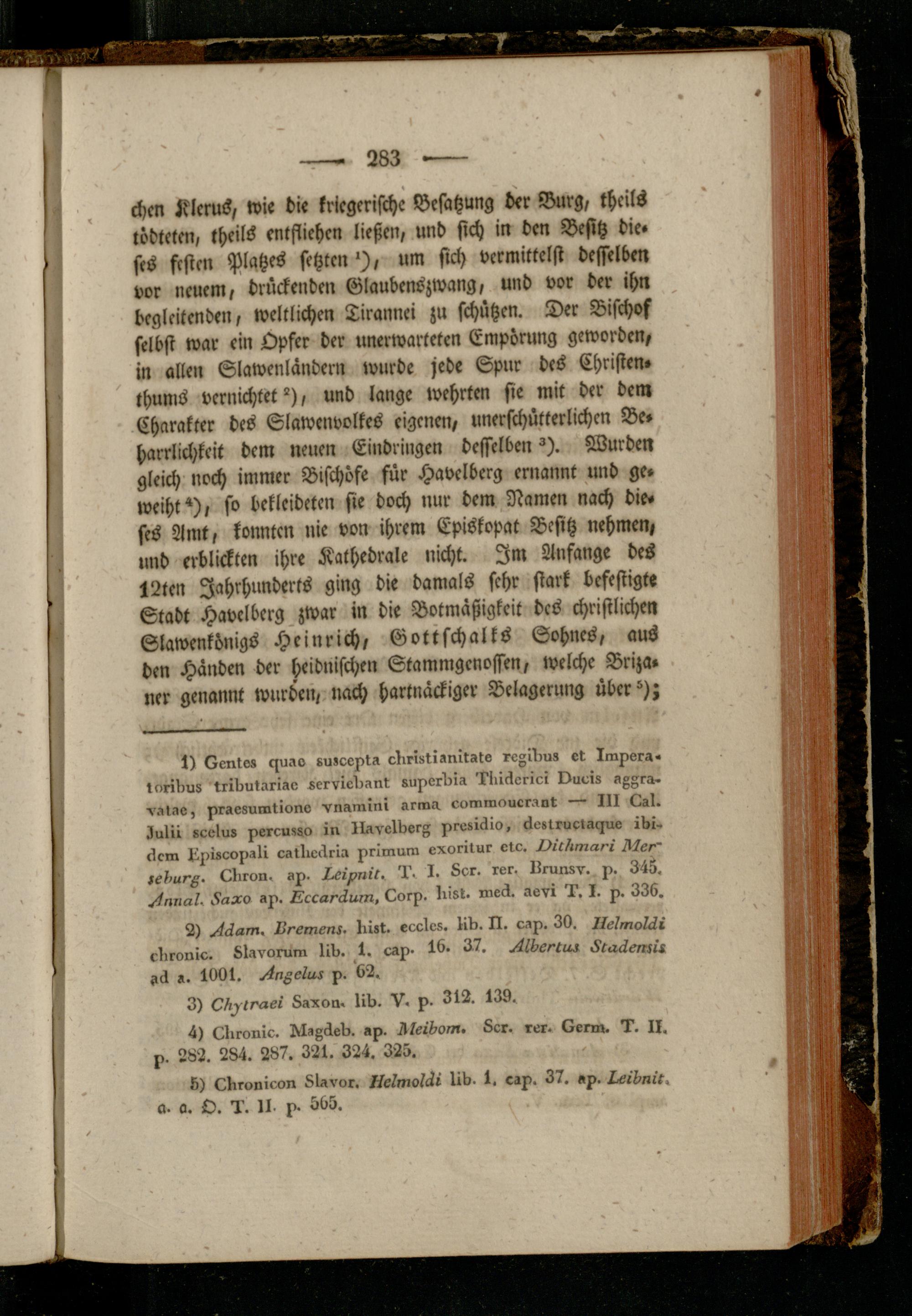 chcn KleruS, wie die kriegerische Besatzung der Burg, theils tödteten, theils entfliehen ließen, und sich in den Besitz die« ses festen Platzes setzten'), um sich vermittelst desselben vor neuem, drückenden Glaubenszwang, und vor der ihn begleitenden, weltlichen Tirannei zu schützen. Der Bischof selbst war ein Opfer der unerwarteten Empörung geworden, in allen Slawenländern wurde jede Spur des Christen» thums vernichtet"), und lange wehrten sie mit der dem Charakter des Slawenvolkes eigenen, unerschütterlichen Be» harrlichkeit dem neuen Eindringen desselben ^). Wurden gleich noch immer Bischöfe für Havelberg ernannt und ge» weiht*), so bekleideten sie doch nur dem Namen nach die« ses Amt, konnten nie von ihrem Episkopat Besitz nehmen, und erblickten ihre Kathedrale nicht. Im Anfänge des 12ten Jahrhunderts ging die damals sehr stark befestigte Stadt Havelberg zwar in die Botmäßigkeit des christlichen Slawenkönigs Heinrich, Gottschalks Sohnes, aus den Händen der heidnischen Stammgenossen, welche Briza» ner genannt wurden, nach hartnäckiger Belagerung über