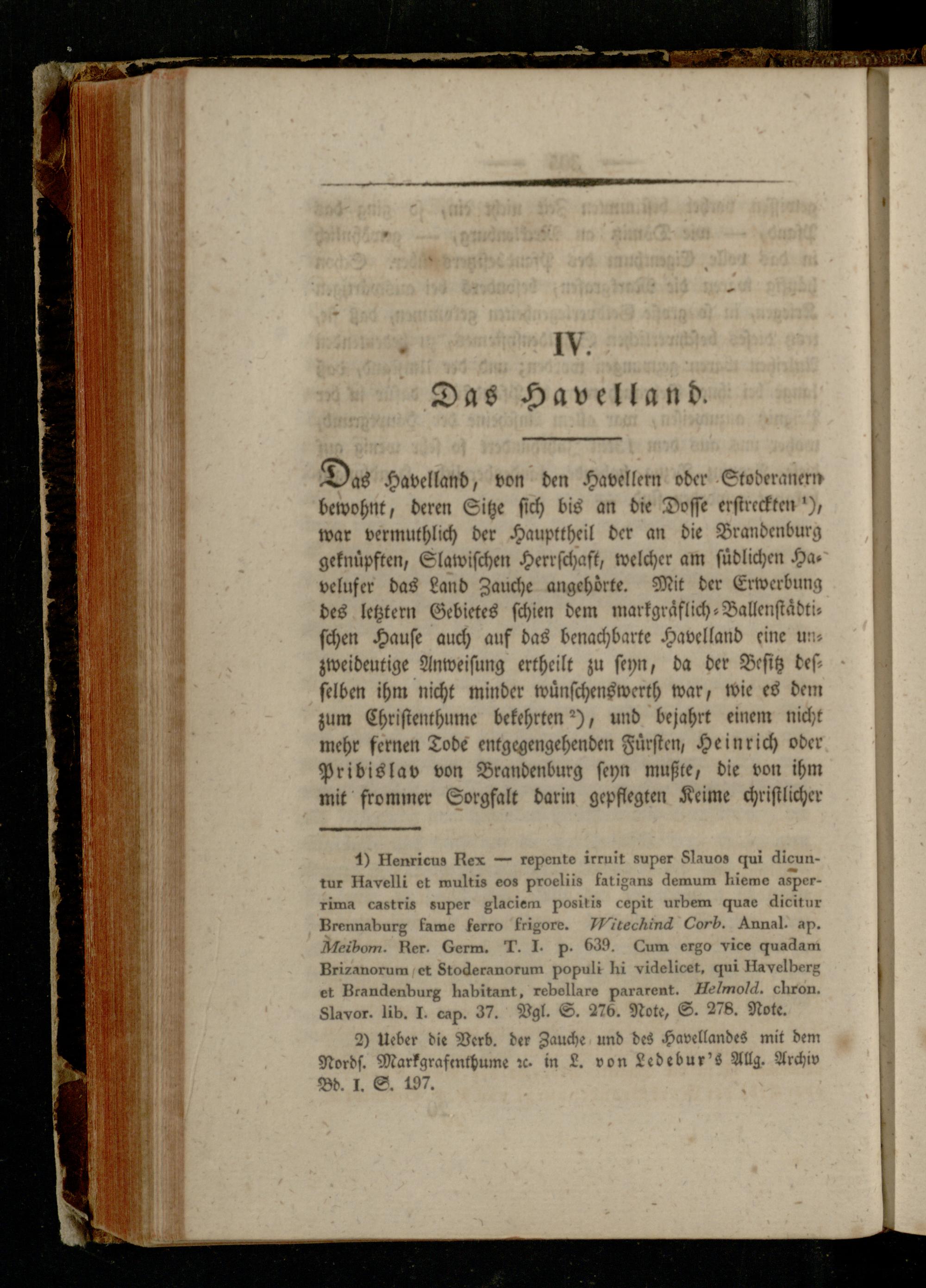 ^Oas Havelland, von den Havellern oder Stoderaner» bewohnt, deren Sitze sich bis an die Dosse erstreckten'), war vermuthlich der Haupttheil der an die Brandenburg geknüpften, Slawischen Herrschaft, welcher am südlichen Ha» veluser das Land Zauche angchörte. Mit der Erwerbung des letztem Gebietes schien dem markgräflich-Dallcnstädti- sichen Hause auch auf das benachbarte Havelland eine unzweideutige Anweisung ertheilt zu seyn, da der Besitz desselben ihm nicht minder wünschenswerth war, wie es dem zum Christenthumc bekehrten"), und bejahrt einem nicht mehr fernen Tode entgegensetzenden Fürsten, Heinrich oder Pribislav von Brandenburg seyn mußte, die von ihm mit frommer Sorgfalt darin gepflegten Keime christlicher