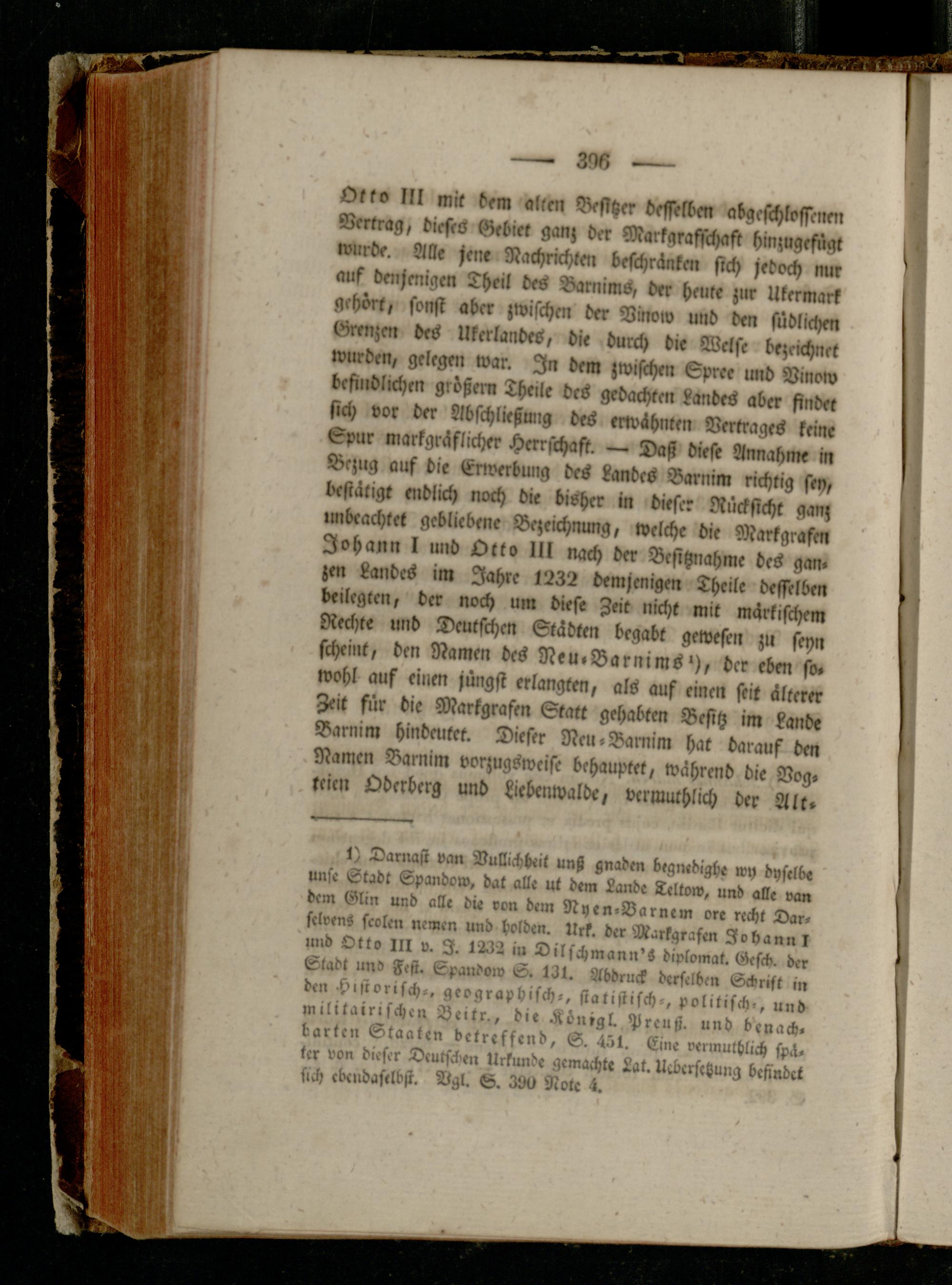 Otto Hl mit dem alten Besitzer beffelbm abgeschlossene,! Vertrag, dieses Gebiet ganz per Markgraffchaft hinzugessigt wurde. Alle jene Nachrichten beschränken sich jedoch nur auf denjenigen Lheil des Barnims, der heute zur Ukermark gehört, sonst aber zwischen der Vinow und den südlichen Grenzen des Ukerlandes, di« durch die Welse bezeichnet wurden, gelegen war. In dem zwischen Spree und Vinow befindlichen größem Theile des gedachten Landes aber findet sich vor der Abschließung des erwähnten Vertrages keine Spur niarkgräflicher Herrschaft. — Daß diese Annahme in Bezug auf die Erwerbung des Landes Barnim richtig sey, bestätigt endlich noch die bisher in dieser Rücksicht ganz unbeachtet gebliebene Bezeichnung, welche die Markgrafen Johann I und Otto Ul nach der Besitznahme des ganzen Landes im Jahre 1232 demjenigen Theile desselben beilegten, der noch um diese Zeit nicht mit märkischem Rechte und Deutschen Städten begabt gewesen zu sryn scheint, den Namen des Neu-Barnims'), der eben sowohl auf einen jüngst erlangten, als auf einen seit älterer Zeit für die Markgrafen Statt gehabten Besitz im Land« Barnim hindeutct. Dieser Neu. Barnim hat darauf den Namen Barnim vorzugsweise behauptet, während die Dog. kticn Oderbrrg und Liebenwalde, vcrmurhlich der Alt»
