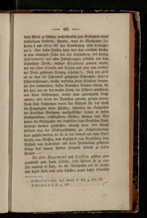 Die Orte Saarmund und Trebbin gehören zwar gleichfalls zum Lande Teltow, doch scheinen sie zu einer Zeit angelegt zu seyn, da die Markgrafen erst die Zauche, und dieses Land noch nicht besaßen, gegen dessen Slawische