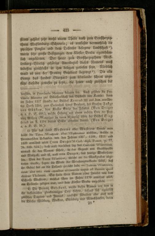 sti-ow gehört jetzt wohl einem Theile nach zum Großherzog, thuin Mecklenburg. Schwerin; es umfaßte vcrmuthlich die zwischen Penzlin und dem Tollmsee belegene Landschaft worin sehr große Besitzungen dem Kloster Broda eigenchüm. lich angehörten. Der heute zum Großherzogthum Mecklenburg-Strekitz gehörige Amtsbezirk dieses Namens muß indessen gleichfalls in ihm belegen gewesen sehn. Nördlich ward es von der Provinz Gotebant begrenzt *). Die alte Grenze bas Landes Stargard zum Ukerlande scheint ungefähr dieselbe gewesen zu scyn, die heute noch zwischen der
