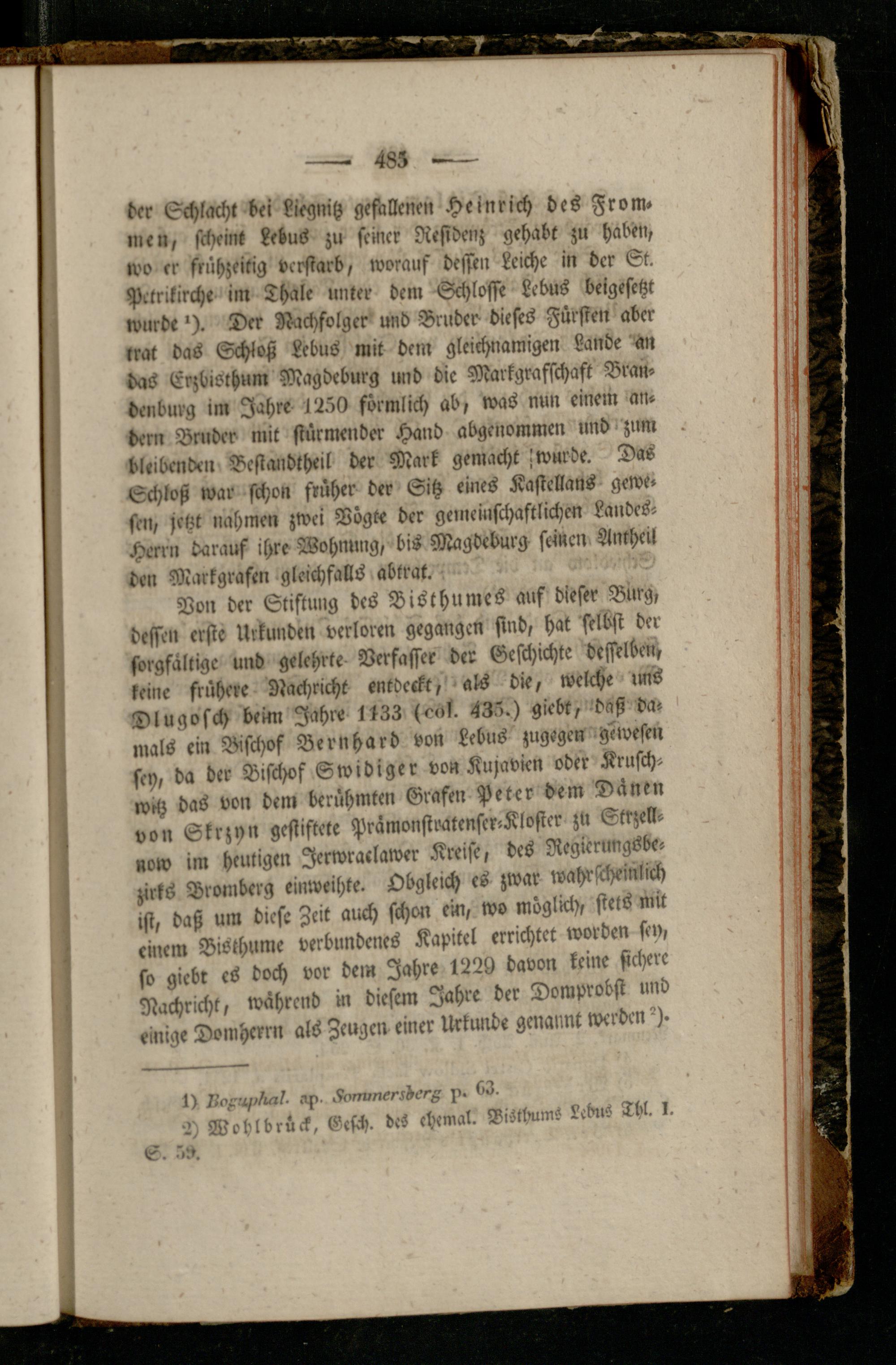 Von der Stiftung des Bi stHumes auf dieser Burg, dessen erste Urkunden verloren gegangen sind, hat selbst der sorgfältige und gelehrte Verfasser der Geschichte desselben, keine frühere Nachricht entdeckt, als die, welche uns Dlugosch beim Jahre 1133 s«'l. 435.) giebt, daß damals ein Bischof Bernhard von Lebus zugegen gewesen sch, da der Bischof Swidiger von Kujavien oder Krusch- w»tz das von dem berühmten Grafen Peter dem Dänen von Skrzyn gestiftete Prämonstratenscr-Klosier zu Strzell» now im heutigen Jerwraclawer Kreise, des Regierungsbezirks Bromberg einweihte. Obgleich es zwar wahrscheinlich ist, daß um diese Zeit auch schon ein, wo möglich, stets mit einem Bisthume verbundenes Kapitel errichtet worden sin, so giebr cs doch vor dem Jahre 1229 davon keine sichere Nachricht, während in diesem Jahre der Domprobst und einige Domherrn als Zeugen einer Urkunde genannt werden
