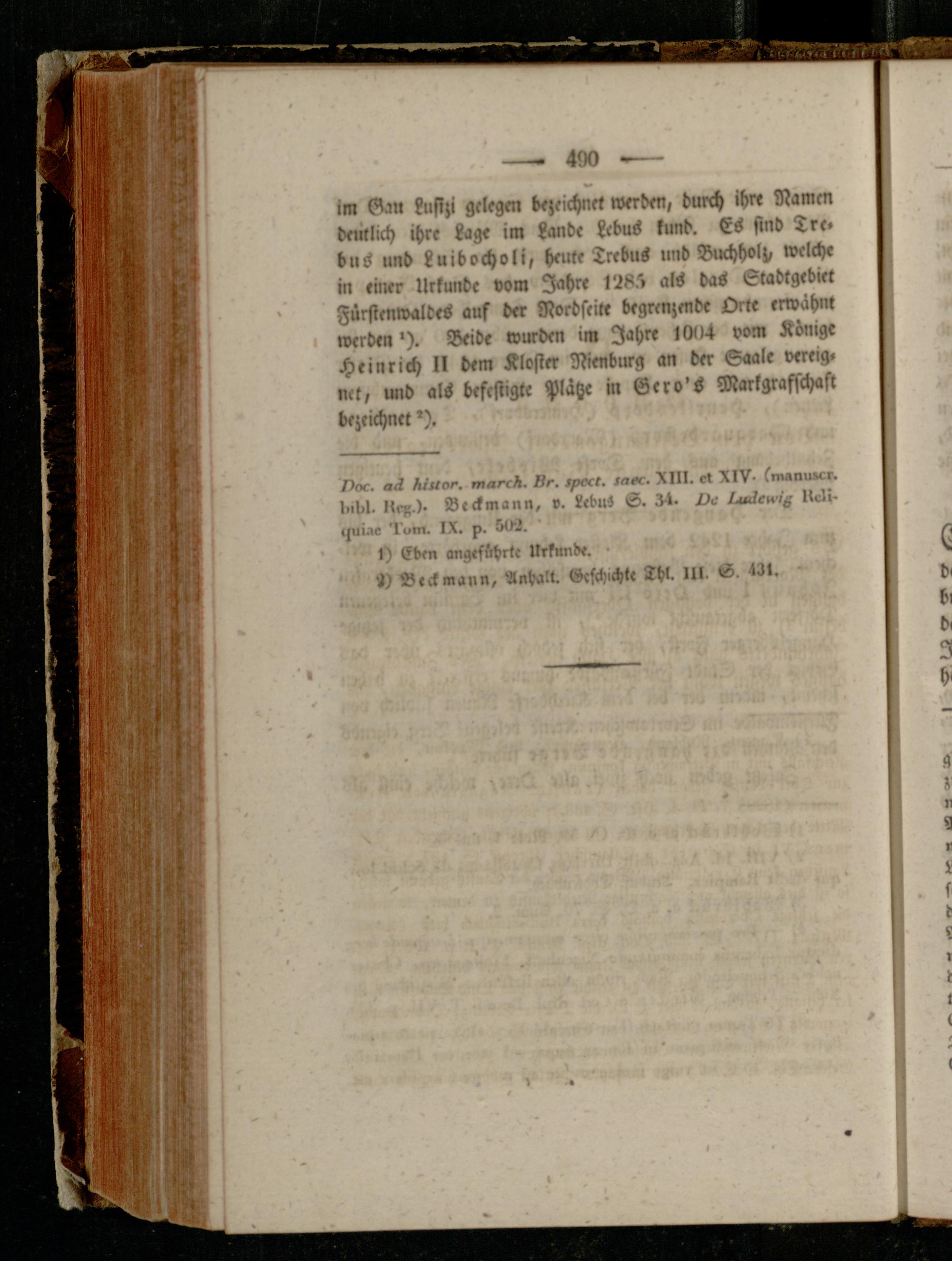 im Gan kustzi gelegm bezeichnet werden, durch ihre Namen deutlich ihre Lage im Lande kcbus kund. Es sind Tre« bus und Luibocholi, heute Trebus und Buchholz, welch« in einer Urkunde vom Jahre 128"» als das Stadtgebiet Fürstenwaltes auf der Nord feite begrenzmde Orte erwähnt werden'). Beide wurden im Jahre 100-t vom Könige Heinrich tk dem Kloster Nienburg an der Saale vereig« net, und als befestigte Plätze in Gero's Markgrafschaft bezeichnet