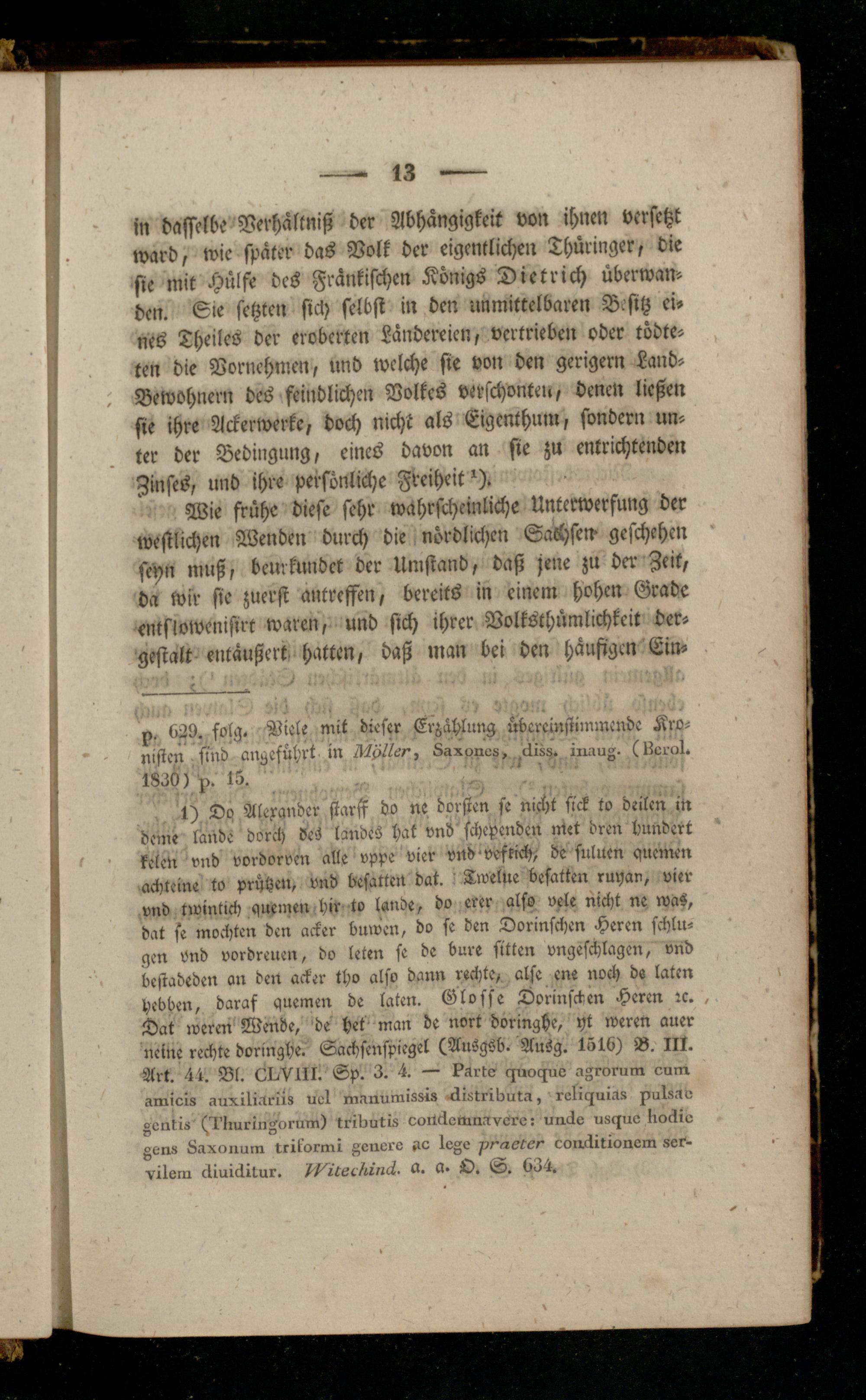 1) Dq Alexander starff do ne borsten ft nicht fick to deilen in dem« lande dorch des Landes hat vnö'schependen irtet drcn hundert keleN vnd verdorren alle vppe vier vnd-vefkich, de fuluen quemen achtein« to prützen, vnd besatten dat. Twelue besaiten ruyan, vier vnd ttvinlich queinen hir to lande, do erer also vele nicht ne was, dat ft mochten den acker buwen, do ft den Dorinschen Heren schlugen vnd vordreuen, do leten ft de bure sltken ungeschlagen, vnd bestadeden an den acker tho also dann rechte, alft ene noch de laten hebben, daras quemen de laten. Glosse Dorinscken Heren re. , Dat wererst Wende, de het man de nvrt doringhe, yt weren auer neine rechte doringhe. Sachsenspiegel (Ausgsb. Ausg. 1516) B. III. Art. 44. Bl. Ll-Vlll. Sp. 3. 4. — k-lrto cgnol^e agroruin cum arniols auxili.irns Uol rnanurnisÄ» xlistributa, relignias xiulsav ALlitis sl'Iiuriu^orum) tributis coNckeinnavoro: uncko nsgue lrockio gen» Laxonuin trilormi genoro i>c lege xmcrseor' coirckitionom »er- vilein ciiuicütur. a. a- O. S. 634.