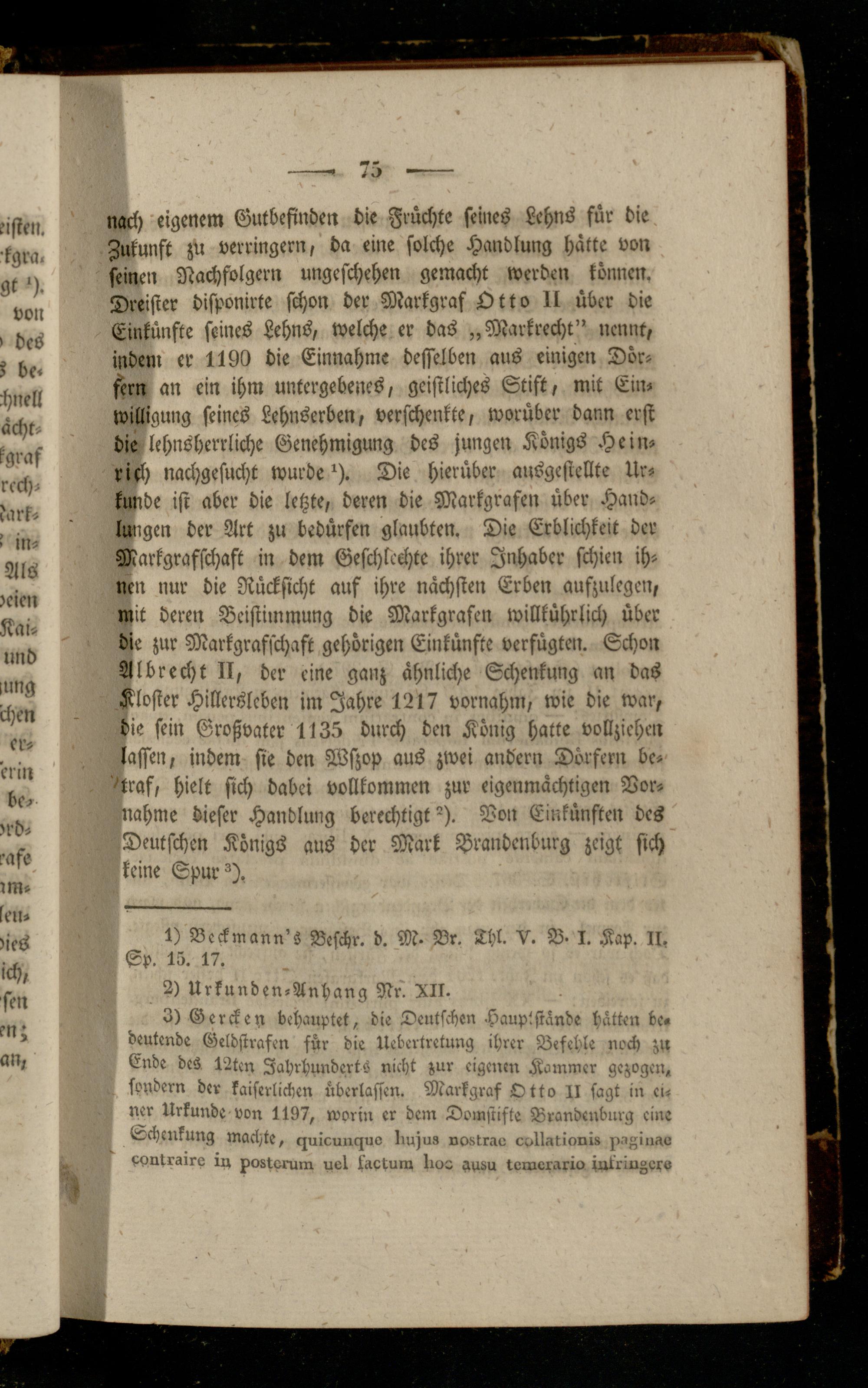 3) Gcrckey behauptet, die Deutschen HauptstLnde hätten be» deutende Geldstrafen für die Ilebertretung ihrer Befehle nach zu Ende des 12tcn Jahrhunderts nicht zur eigenen Kammer gezogen, sondern der kaiserlichen überlassen. Markgraf Otto II sagt in einer Urkunde von 1197, worin er dem Domstifte Brandenburg eine Schenkung machte, ^uicnnguL lussu» noswao cnllutioni» paßiiiao pyutrairs in xostvrum uel kaetum Iroa au!>u loinerario jntringezs