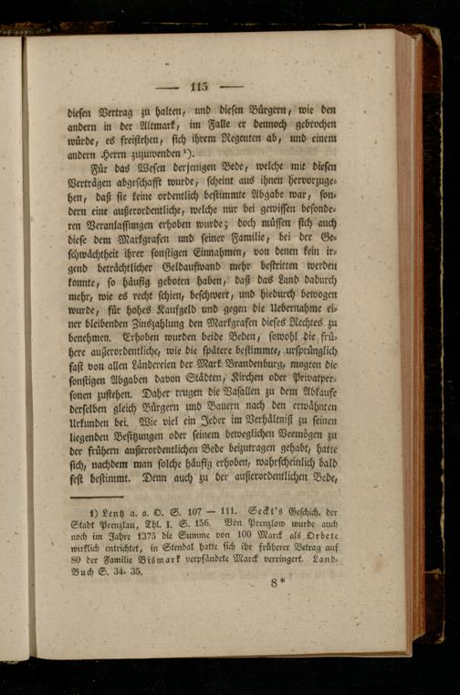 1) Lentz a. a. O. S. 107 — 111. Seckt's Geschich. der Stadt Prenzlau, Thl. l. S. 156. Don Prenzlow wurde auch noch im Jahre 1375 die Summe von 100 Marck als Orbcte wirklich entrichtet, in Stendal hatte sich ihr früherer Betrag auf 80 der Familie Bismark verpfändete Marck verringert. Land- Buch S. 34. 35.