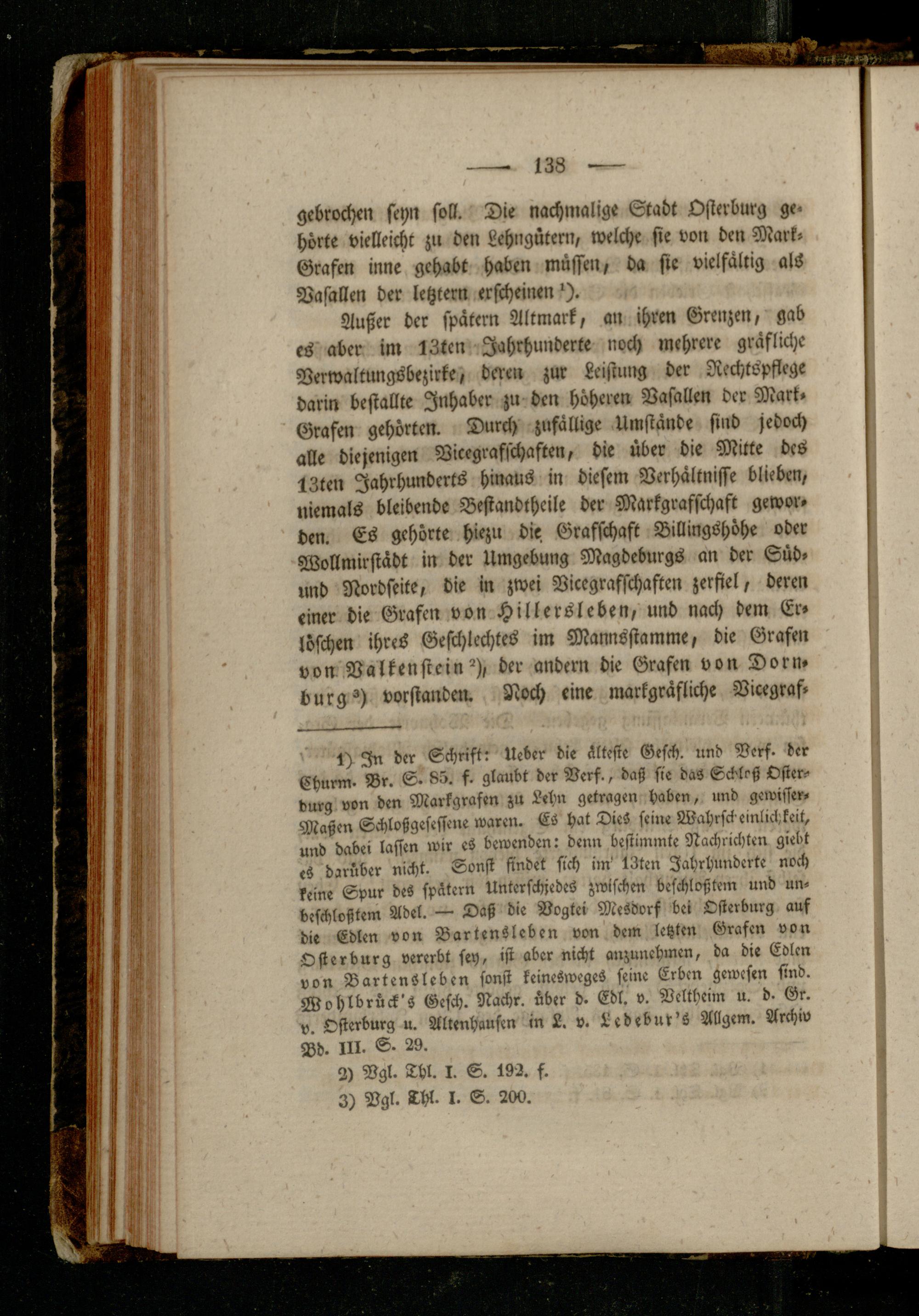 Außer der spätem Altmark, an ihren Grenzen, gab es aber im 13ten Jahrhunderte noch mehrere gräfliche Verwaltungsbezirke, deren zur Leistung der Rechtspflege darin bestallte Inhaber zu den höheren Vasallen der Mart- Grafen gehörten. Durch zufällige Umstände sind jedoch alle diejenigen Vicegrafschaften, die über die Mitte des 13ten Jahrhunderts hinaus in diesem Verhältnisse blieben, niemals bleibende Bestandthcile der Markgrafschaft geworden. Es gehörte hiezu die Grafschaft Billingshöhe oder Wollmirstädt in der Umgebung Magdeburgs an der Süd- und Nordseite, die in zwei Vicegrafschaften zerfiel, deren einer die Grafen von Hillersleben, und nach dem Erlöschen ihres Geschlechtes im Mannsstamme, die Grafen von Valkenstein'), der andern die Grafen von Dornburg vorstanden. Noch eine markgräfliche Vicegraf-