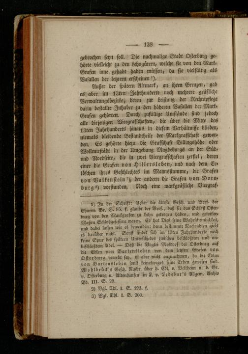 1) In der Schrift: Ueber die älteste Gesch, und Vers, der Churm- Br. S- 85. f. glaubt der Vers., daß sie das Scblrß Oster- durg von den Markgrafen zu Lehn getragen haben, und gewiffer- Maßen Schloßgeseffene waren. ES hat Dies seine Wahrscbeinlichkeit, und dabei lassen wir eS bewenden: denn bestimmte Nachrichten giebt es darüber nicht. Sonst findet sich im' 13ten Jahrhunderte noch keine Spur des später» Unterschiedes zwischen beschloßt«,« und un- beschloßtem Adel. — Daß die Vogtei MeSdvrf bei Lsterburg auf die Edlen von Bartensleben von dem letzten Grafen von Osterburg vererbt sey, ist aber nicht anzunchmen, da die Eslcn von Bartensleben sonst keinesweges seine Erben gewesen sind. Wohlbrück'S Gesch. Nachr. über d. Edl. v. Veltheim u. d- Gr. v. Osterburg u. Alkenhausen in L. v. Ledebut's Allgem. Archiv Dd. IN- S- 29.