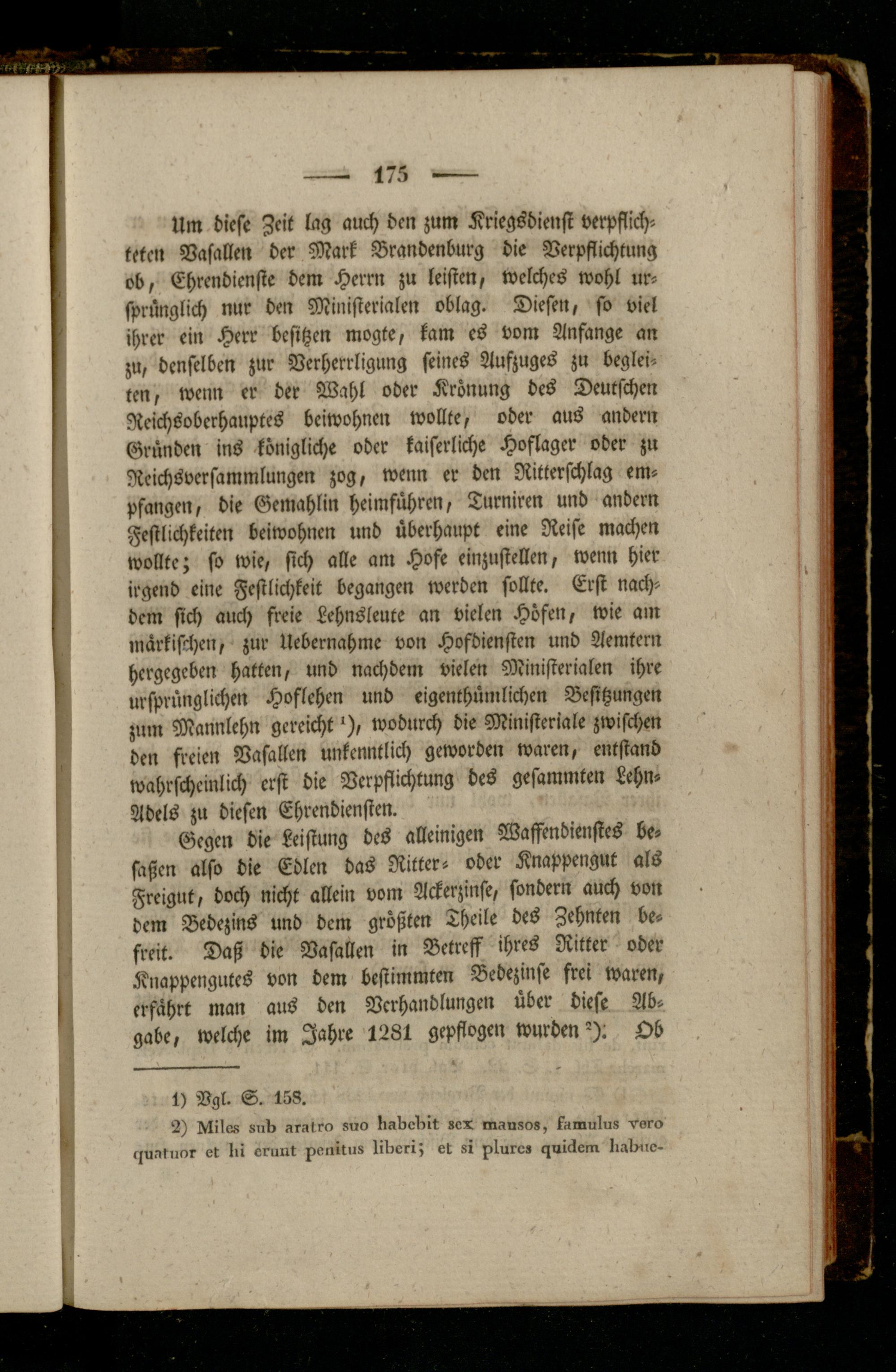 Um diese Zeit lag auch den zum Kriegsdienst verpflichteten Vasallen der Mark Brandenburg die Verpflichtung ob, Ehrendienste dem Herrn zu leisten, welches wohl ursprünglich nur den Ministerialen oblag. Diesen, so viel ihrer ein Herr besitzen mogte, kam es vom Anfänge an zu, denselben zur Verherrligung seines Aufzuges zu begleiten, wenn er der Wahl oder Krönung des Deutschen Reichsoberhauptes beiwohnen wollte, oder aus andern Gründen ins königliche oder kaiserliche Hoflager oder zu Rcichsvcrsammlungen zog, wenn er den Ritterschlag empfangen, die Gemahlin heimführen, Turniren und andern Festlichkeiten beiwohnen und überhaupt eine Reise machen wollte; so wie, sich alle am Hofe einzustellen, wenn hier irgend eine Festlichkeit begangen werden sollte. Erst nachdem sich auch freie Lehnsleute an vielen Höfen, wie am märkischen, zur Uebernahme von Hofdienstcn und Aemtern hcrgegeben hatten, und nachdem vielen Ministerialen ihre ursprünglichen Hoflehen und eigenthümlichen Besitzungen zum Mannlehn gereichtwodurch die Ministeriale zwischen den freien Vasallen unkenntlich geworden waren, entstand wahrscheinlich erst die Verpflichtung des gesammten Lehn- Adels zu diesen Ehrendiensten.