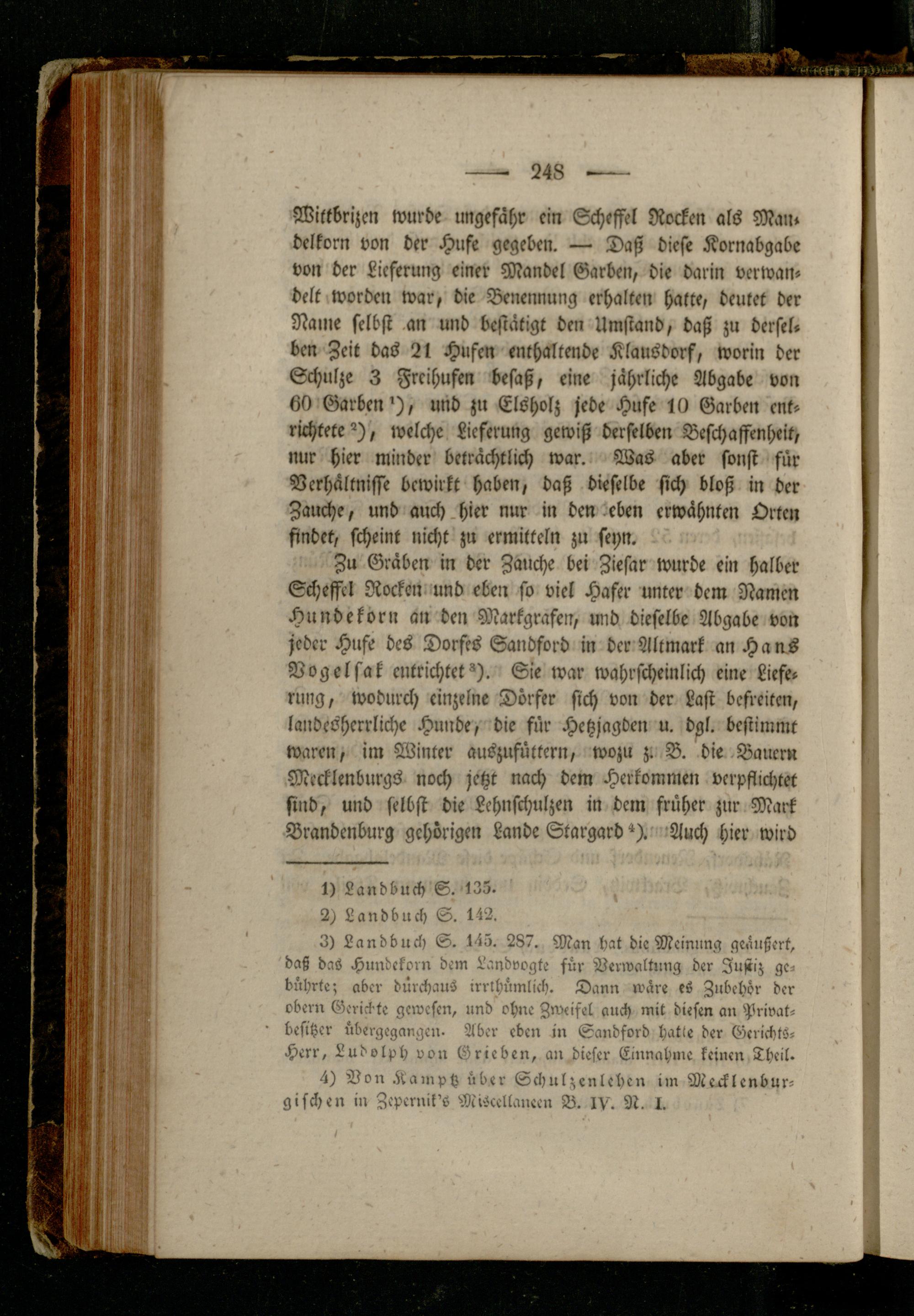4) Von Kamptz über Schulzcnlehcn iin McaLlenbur- gischen in Zepernik'S MiScellaneen V. IV. N. I.