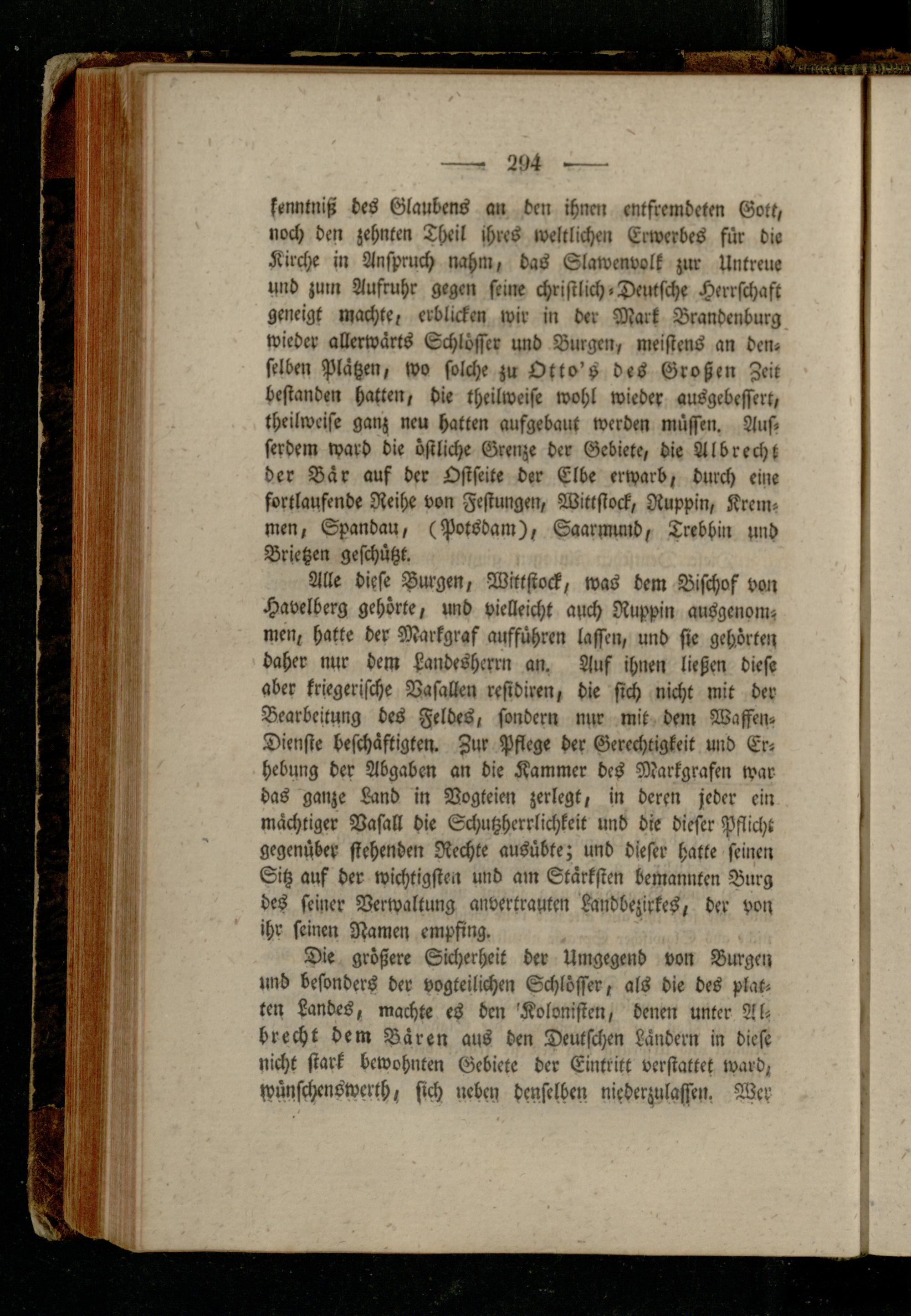 Die größere Sicherheit der Umgegend von Burgen und besonders der vogteilichen Schlösser, als die des platten Landes, machte es den 'Kolonisten, denen unter Albrecht dem Bären aus den Deutschen Ländern in diese nicht stark bewohnten Gebiete der Eintritt verstauet ward, Wünschenswerth, sich neben denselben nicderzulassen, Wer