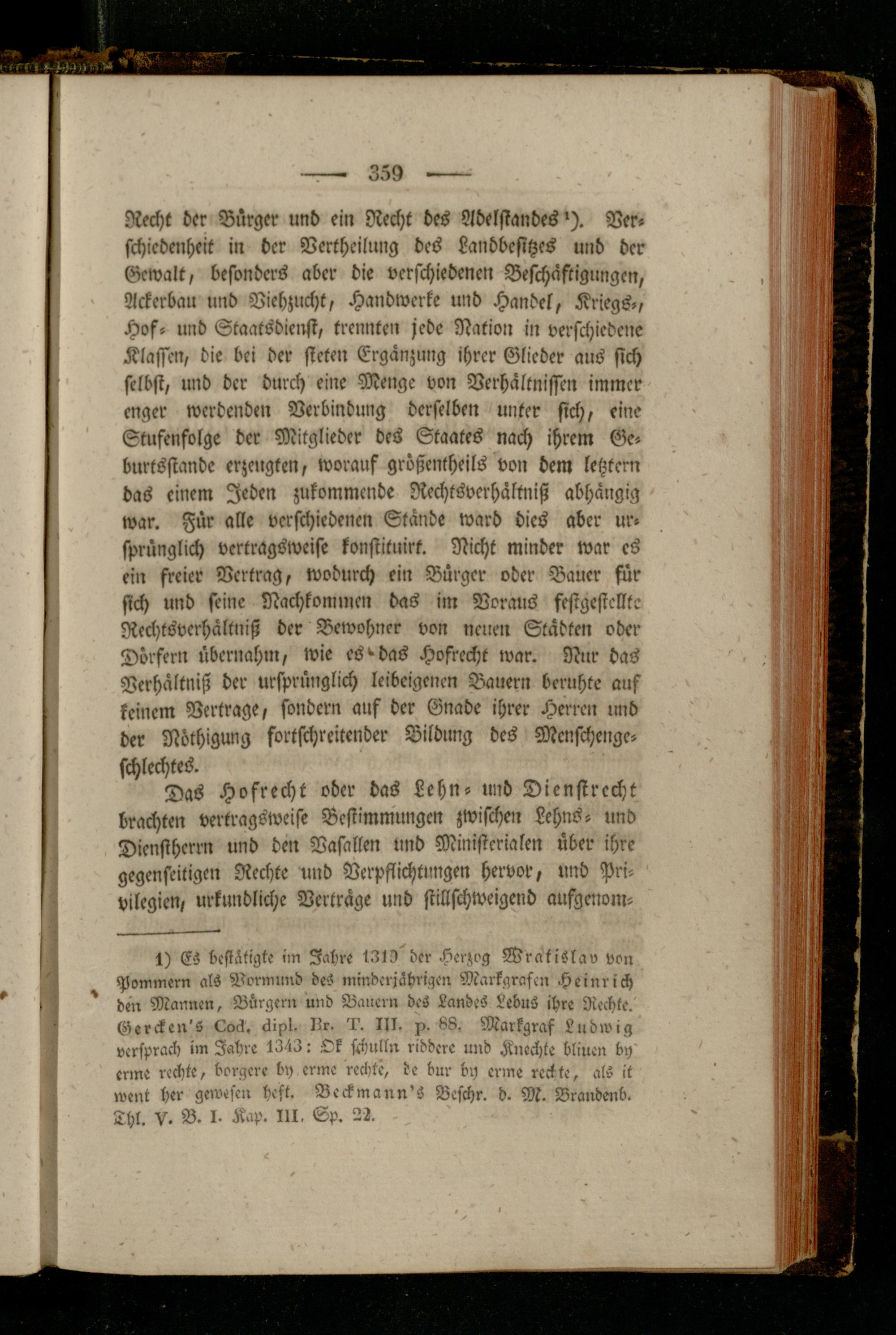 1) ES bestätigte im Jahre 1313 der Herzog Wratislav von Pommern als Vormund des minderjährigen Markgrafen Heinrich * den Mannen, Bürgern und Bauern des Landes Lebus ihre Rechte. Gercken's ckipl. Hr. '1°. III. p. 88. Markgraf Ludwig versprach im Jahre 13-13: Ok schulln ridderc und Knechte bliuen by crme rechte, borgcre by erme rechte, de bur by crme reckte, als it went her gewesen Heft. Bcckmann's Beschr. d. M. Brandend. Thl. V- B. I. Kap. III. Sp. 22.