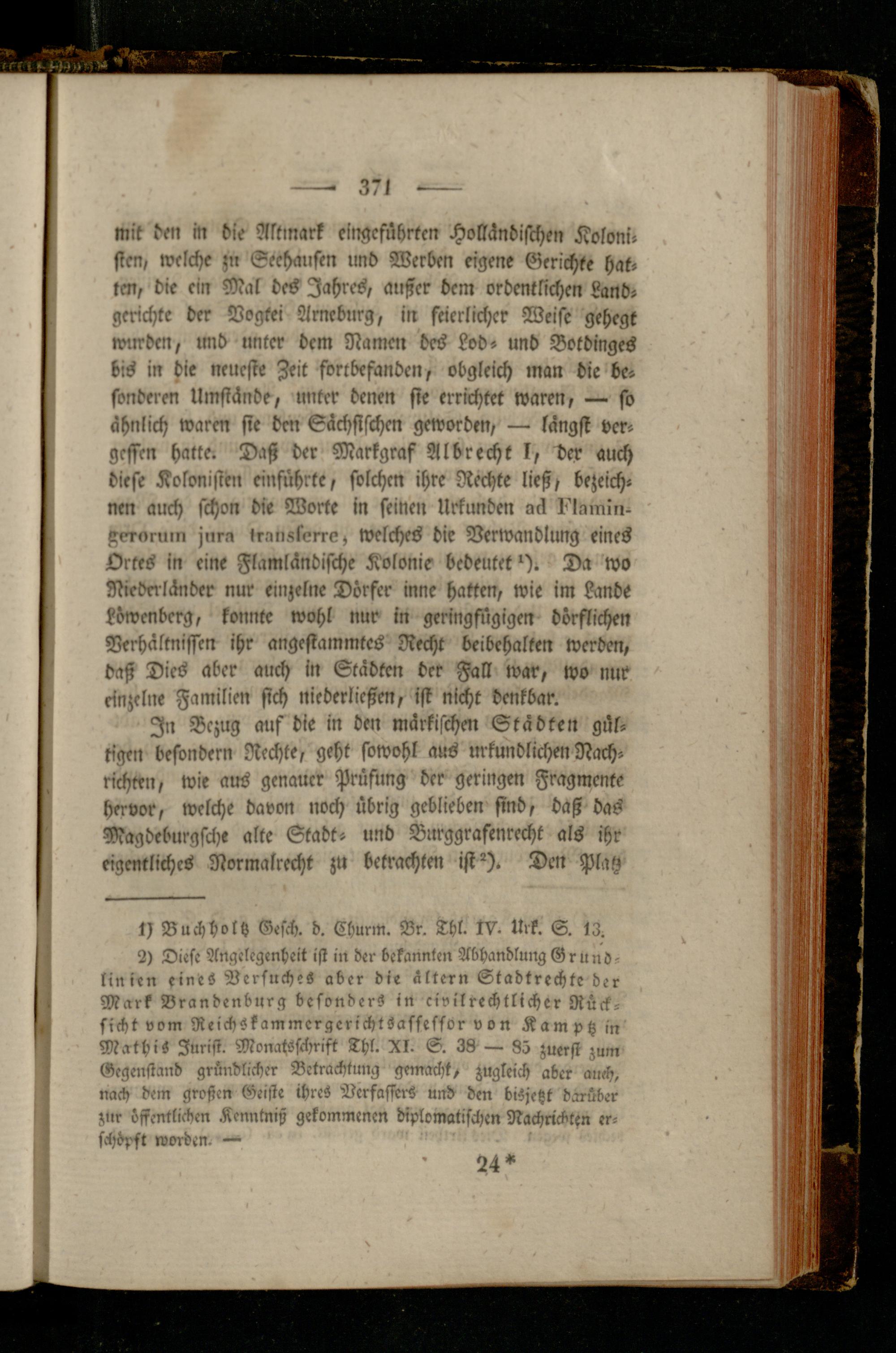 2) Diese Angelegenheit ist in der bekannten Abhandlung G r u n ö - linirn eines Versuches aber die ältern Stadtrechte der Mark Brandenburg besonders in civilrechtlicher Rücksicht vom ReichSkammergerichtSassessor von Kamptz m MathiS Jurist. Monatsschrift Thl. XI. S. 38 — 83 zuerst zum Gegenstand gründlicher Betrachtung gemacht, zugleich aber auch, nach dem großen Geiste lhreS Verfassers und den biSjetzt darüber zur Lffentlichen Kenntniß gekommenen diplomatischen Nachrichten erschüfst worden. —