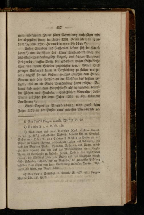 Eines Vogtes zir Brandenburg wird zuerst beim Jahre 1179 in der Person eines gewissen Theodrich ge