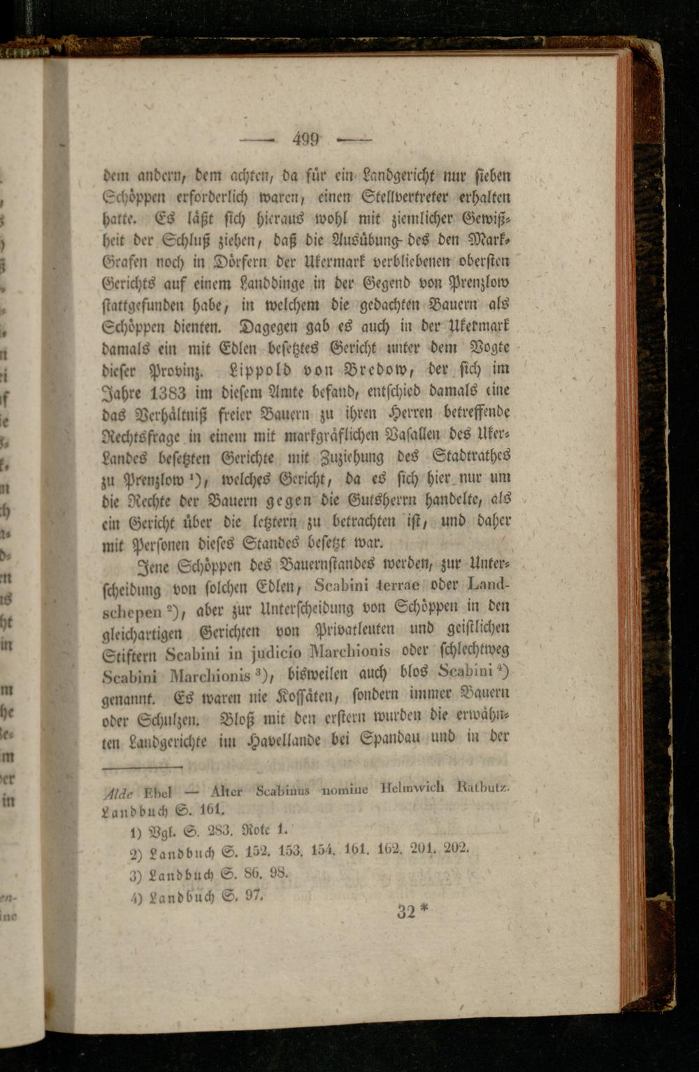Jene Schöppen des Bauernstandes werden, zur Unterscheidung von solchen Edlen, 8cadini terrae oder l.aiul- «eliepe»-), aber zur Unterscheidung von Schöppen in den gleichartigen Gerichten von Privatleuten und geistlichen Stiftern 8cul>ini in zusticin Narelnonis oder schlechtweg 8c.'ibi„i Mrcliionis 3), bisweilen auch blos 8cudiniH genannt. Es waren nie Kossäten, sondern immer Bauern oder Schulzen. Bloß mit den erster» wurden die erwähnten Landgerichte im Havellande bei Spandau und in der