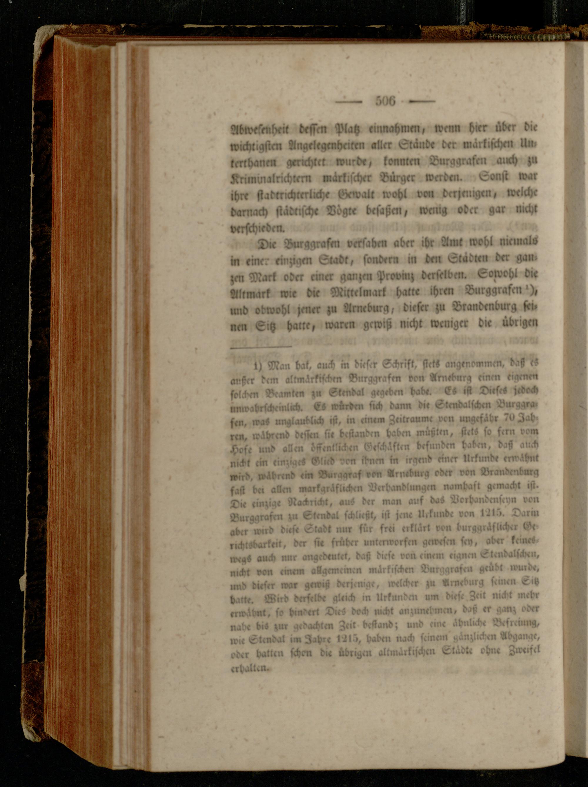 I) Non bol, auch m dieser Schrift, stet« angenommen, boß außer dem altmärkistbrn Burggrafen ron Arneburg einen eigenen solchen Beamten zu Stendal gegckm dobe. St iß Diese« jedoch unwahrscheinlich. Et würden sich dann di« Stendalschen Burgge» f«n, wo« unglaublich iß, in einem Zeitraum« vcn ungefähr 7v Iah. re«, mährend dessen st« bestanden haben müßten, stet« so fern rom Hofe und allen tstenlkstben Geschäften befunden haben, daß auch nicht ein einzige« Glied rem ihnen ln irgend einer Urkunde erwähnt wird, während «in Bnrqqras von Arneburg oder von Brandenburg fast bei allen markqräflichen Verhandlungen namhaft gemacht ist. Dx einzig« Nachricht, au« der man auf da« Vorhandenst«» von Burggrofrn zu Stendal schließt, ist jene U,künde von lälL. Darin ^«r wird diese Stadt nur für frei erklärt von burgqräfiicher Ge richttbarkrit, der st« früher unterworfen gewesen sty, aber kein«« weg« auch mir angedeute», daß dies« von einem eignen Stendalfchen, nickt von einem allgemeinen märkischen Burggraf*» geübt wurde, und dieser war gewiß derjenige, welcher zu Arneburg seinen Sitz halte. Wird derselbe gleich in Urkunden um dies« Zeit nicht mehr »rwäbnt, so hindert Die« doch nicht anznnehmcn» daß er ganz oder nab« bi« zur gedachten Zeit bestand; und «in« ähnlich« Befreiung, w>« Stendal im Jahr« lälä, haben nach seinem gänzlichen Abgang«, oder halten schon dx übrigen altmärkischcn Städte ohne Zweifel erhallen.
