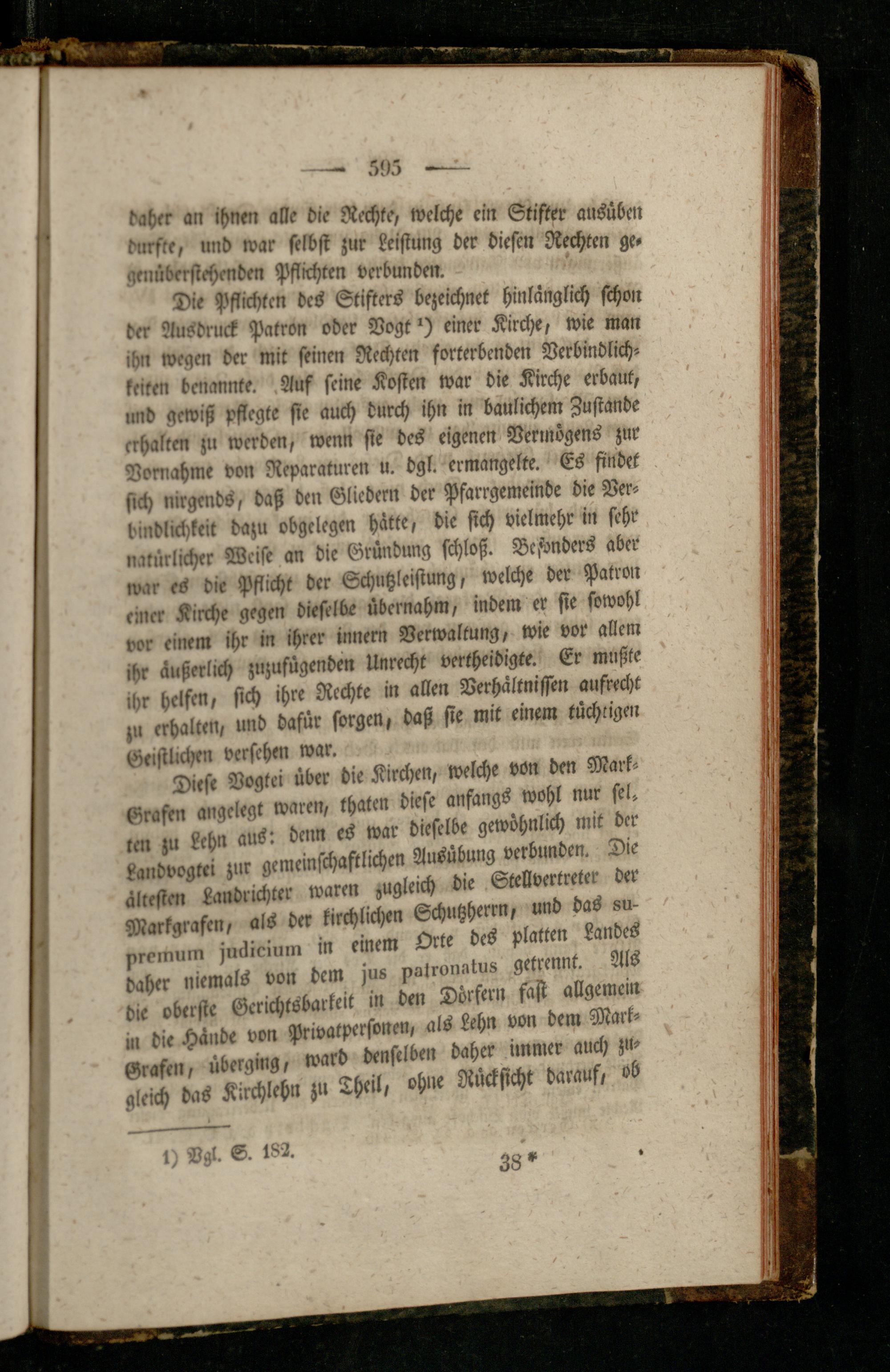 Diese Dogtei über die Kirchen, welche von den Mark- Grafen angelegt waren, thaten diese anfangs wohl nur sei. ken zu Lehn aus: denn eS war dieselbe gewöhnlich mit der Landvogtci zur gemeinschaftlichen Ausübung verbunden. Die ältesten Landrichter waren zugleich die Stellvertreter der Markgrafen, als der kirchlichen Schlitzherrn, und das su- promum jnäiciuin in einem t)rte des platten Landes daher niemals von dem jus patron.itus getrennt. Als die oberste Gerichtsbarkeit in den Dörfern fast allgemein in die Hände von Privatpersonen, als Lehn von dem Mark- Grafen, überging, ward denselben daher immer auch zugleich das Kirchlehn zu Theil, ohne Rücksicht darauf, ob