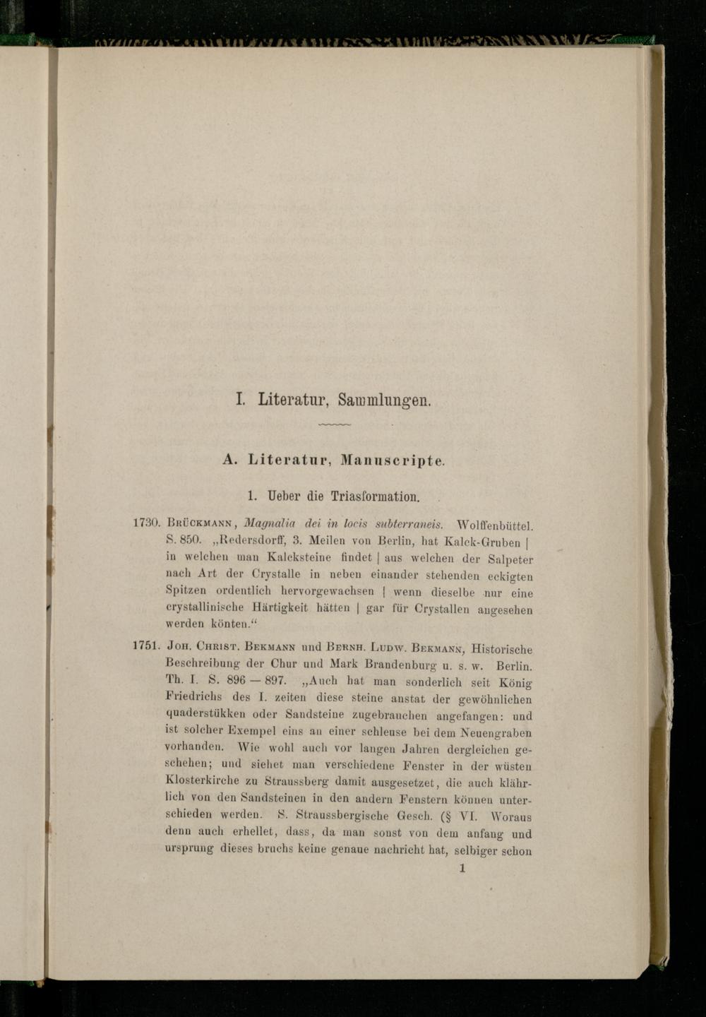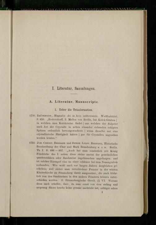 JoH, CHRIST. BEKMANN und BERNE. LUDW. BEKMaANN, Historische Beschreibung der Chur und Mark Brandenburg u. s. w.. Berlin. Th. I. 8. 896— 897.„Auch hat man sonderlich seit König Friedrichs des I. zeiten diese steine anstat der gewöhnlichen quaderstükken oder Sandsteine zugebrauchen angefangen: und ist solcher Exempel eins an einer schleuse bei dem Neuengraben vorhanden. Wie wohl auch vor langen Jahren dergleichen geschehen; und siehet man verschiedene Fenster in der wüsten Klosterkirche zu Straussberg damit ausgesetzet, die auch klährlich von den Sandsteinen in den andern Fenstern können unterschieden werden. 8. Straussbergische Gesch.($ VI. Woraus denn auch erhellet, dass, da man sonst von dem anfang und ursprung dieses bruchs keine genaue nachricht hat, selbiger schon 3