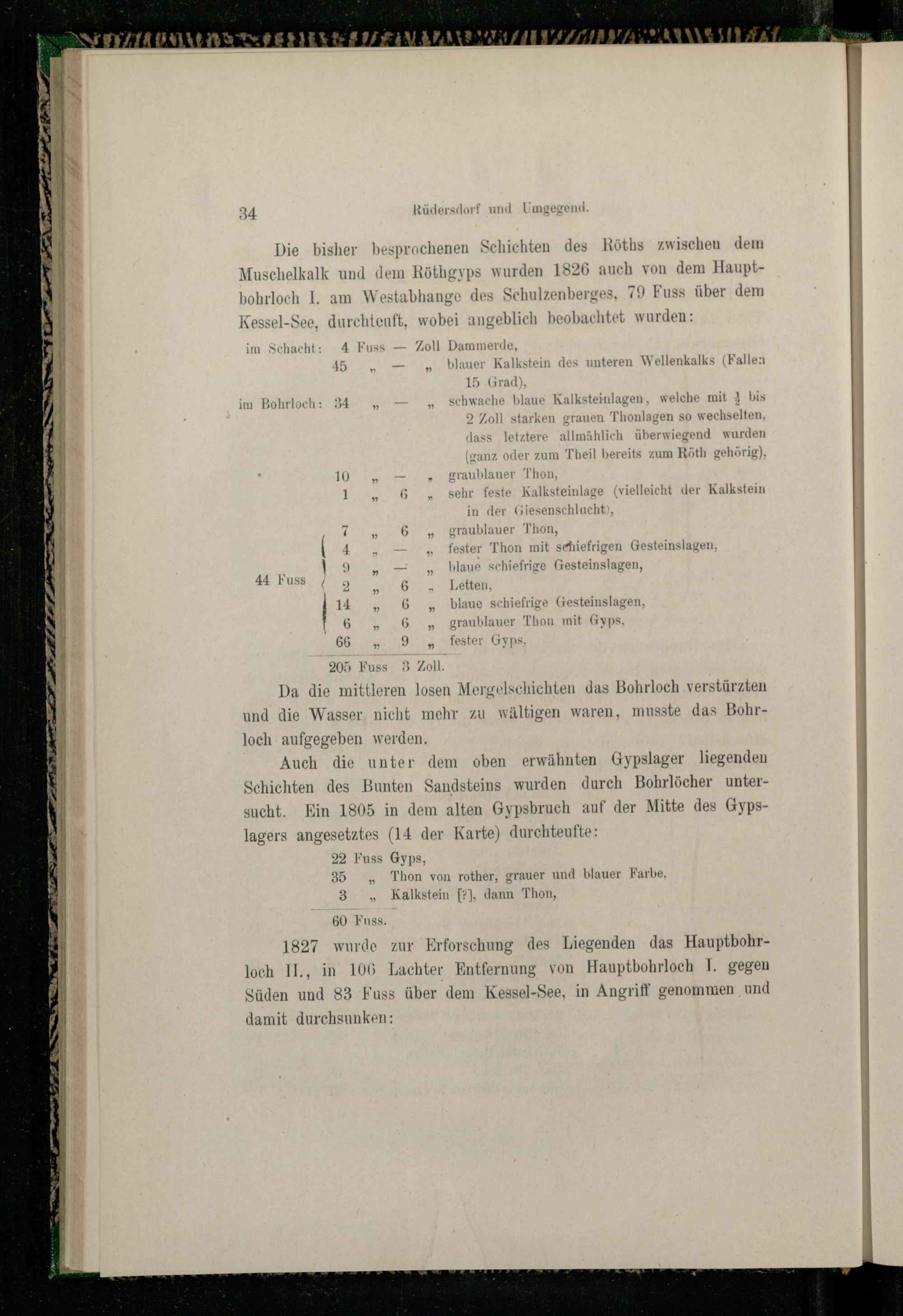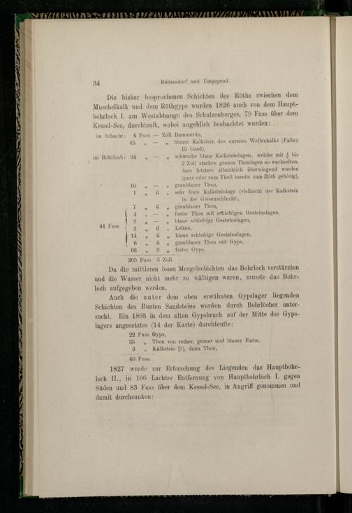 Die bisher besprochenen Schichten des Röths zwischen dem Muschelkalk und dem Röthgyps wurden 1826 auch von dem Hauptbohrloch I. am Westabhange des Schulzenberges, 79 Fuss über dem