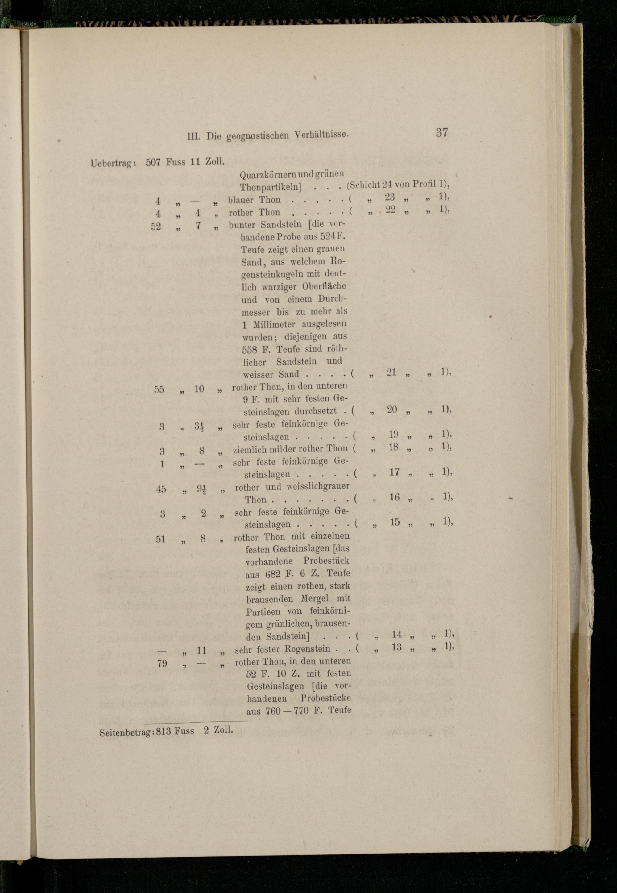 Thonpartikeln].-.(Schicht 24 von Profil 1), km A blauer Thon x A ll 283 9 1), 4 ER 4 rother‘ Thon u ed 2020„2, 52„7„bunter Sandstein[die vor