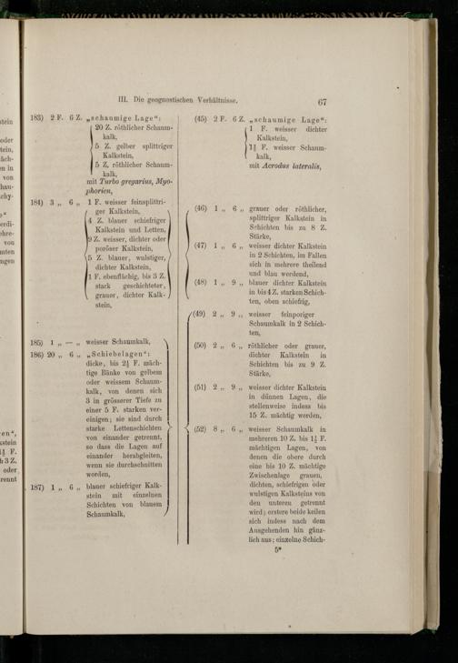 weisser Schaumkalk,) „Schiebelagen“: dicke, bis 24 F. mächtige Bänke von gelbem weissem Schaumdenen