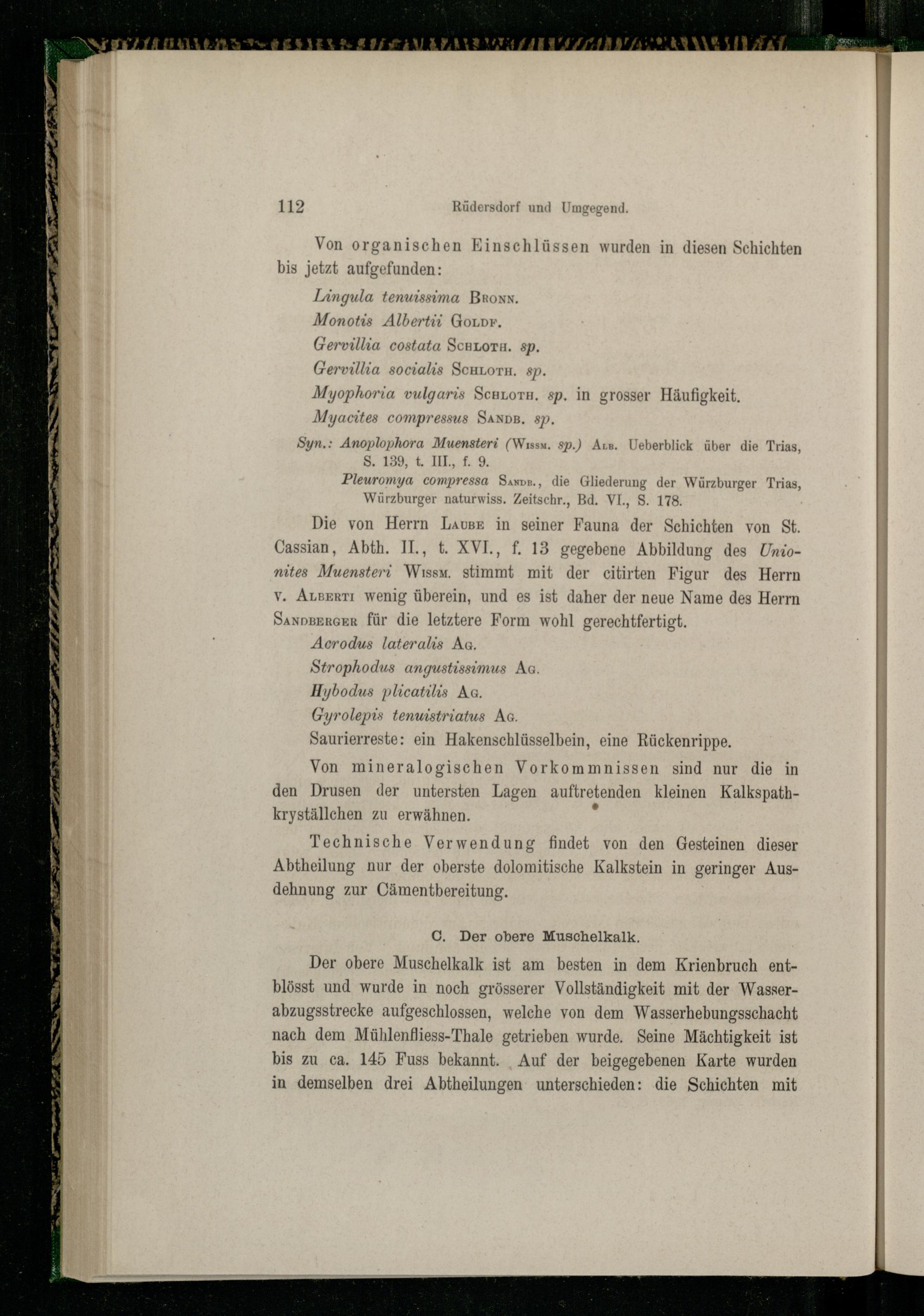 Die von Herrn Lause in seiner Fauna der Schichten von St. Cassian, Abth. II, t. XVI., f. 13 gegebene Abbildung des Unionites Muensteri Wıssm. stimmt mit der citirten Figur des Herrn V. AusERTI Wenig überein, und es ist daher der neue Name des Herrn SAnnBERGER für die letztere Form wohl gerechtfertigt.