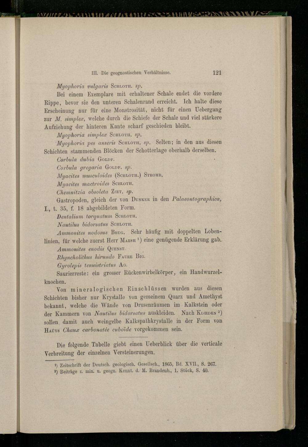 1) Zeitschrift der Deutsch. geologisch. Gesellsch., 1865, Bd. XVII, S. 267. 2?) Beiträge z. min. u. geogn. Kennt. d. M. Brandenb., 1. Stück, S. 40.