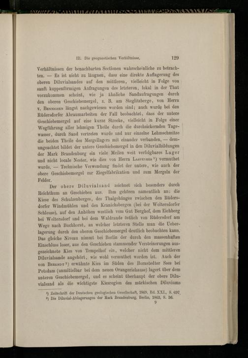 1) Zeitschrift der Deutschen geologischen Gesellschaft, 1869, Bd. XXI., S. 697, 2) Die Diluvial-Ablagerungen der Mark Brandenburg, Berlin, 1863, S. 36.