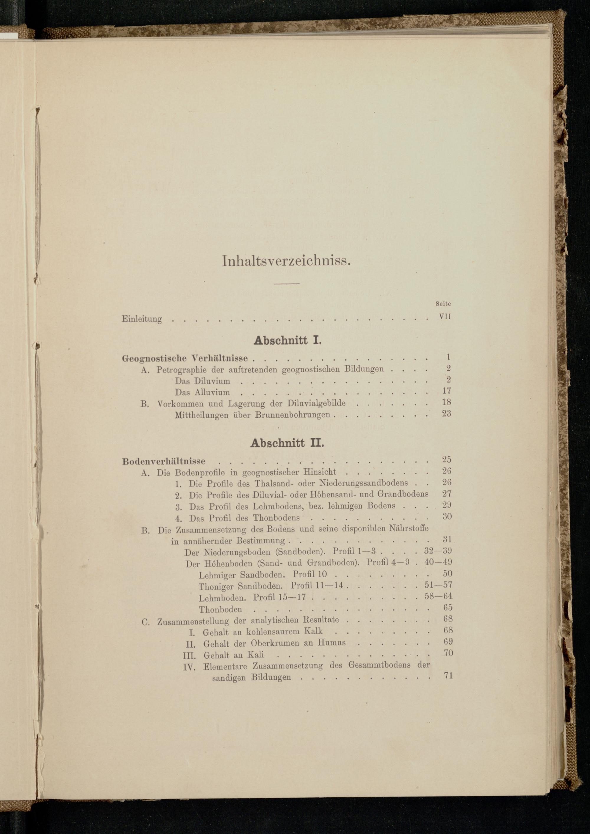 Der Höhenboden(Sand- und Grandboden). Profil 4—9 Lehmiger Sandboden. Profil 10 Thoniger Sandboden. Profil 11—14. Lehmboden. Profil 15—17 Thonboden