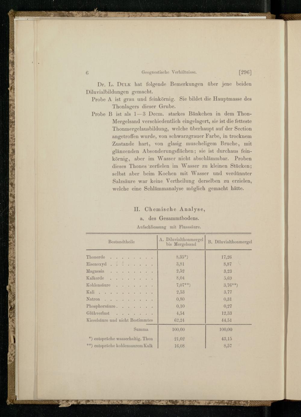 *) entspräche wasserhaltig. Thon 21,02 43,15 ‘) entspräche kohlensaurem Kalk 16,08 8,57