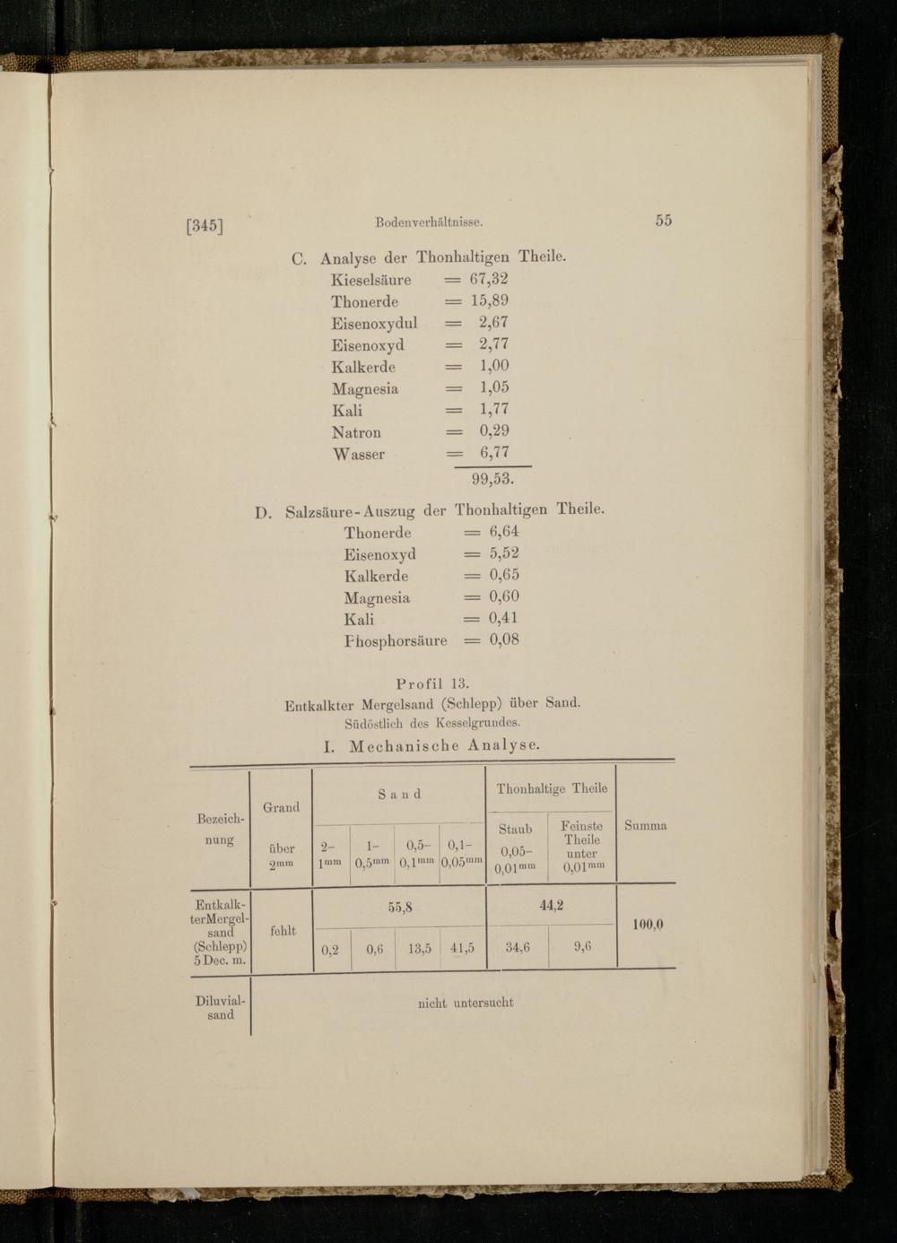 Profil 13. Entkalkter Mergelsand(Schlepp) über Sand. Südöstlich des Kesselgrundes. Il. Mechanische Analyse.