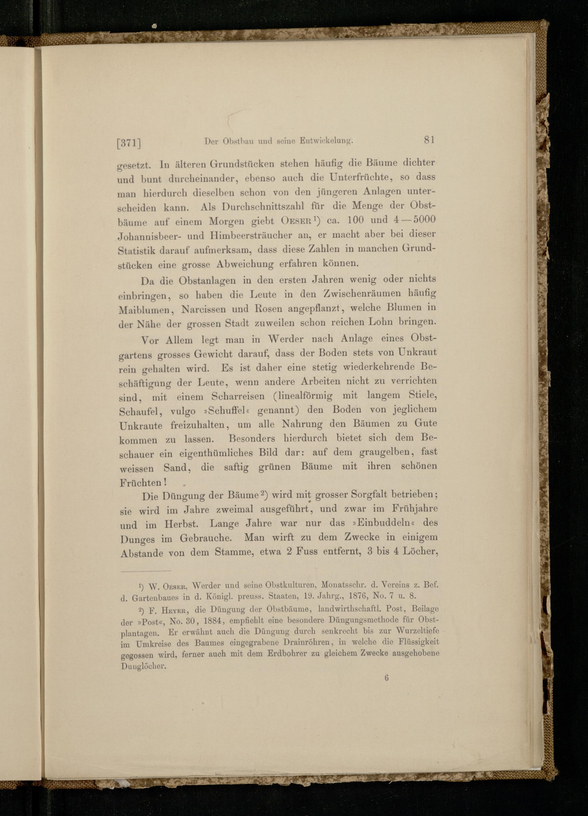 1) W. Onser, Werder und seine Obstkulturen, Monatsschr. d. Vereins z. Bef. d. Gartenbaues in d. Königl. preuss. Staaten, 19. Jahre., 1876, No. 7 u. 8,