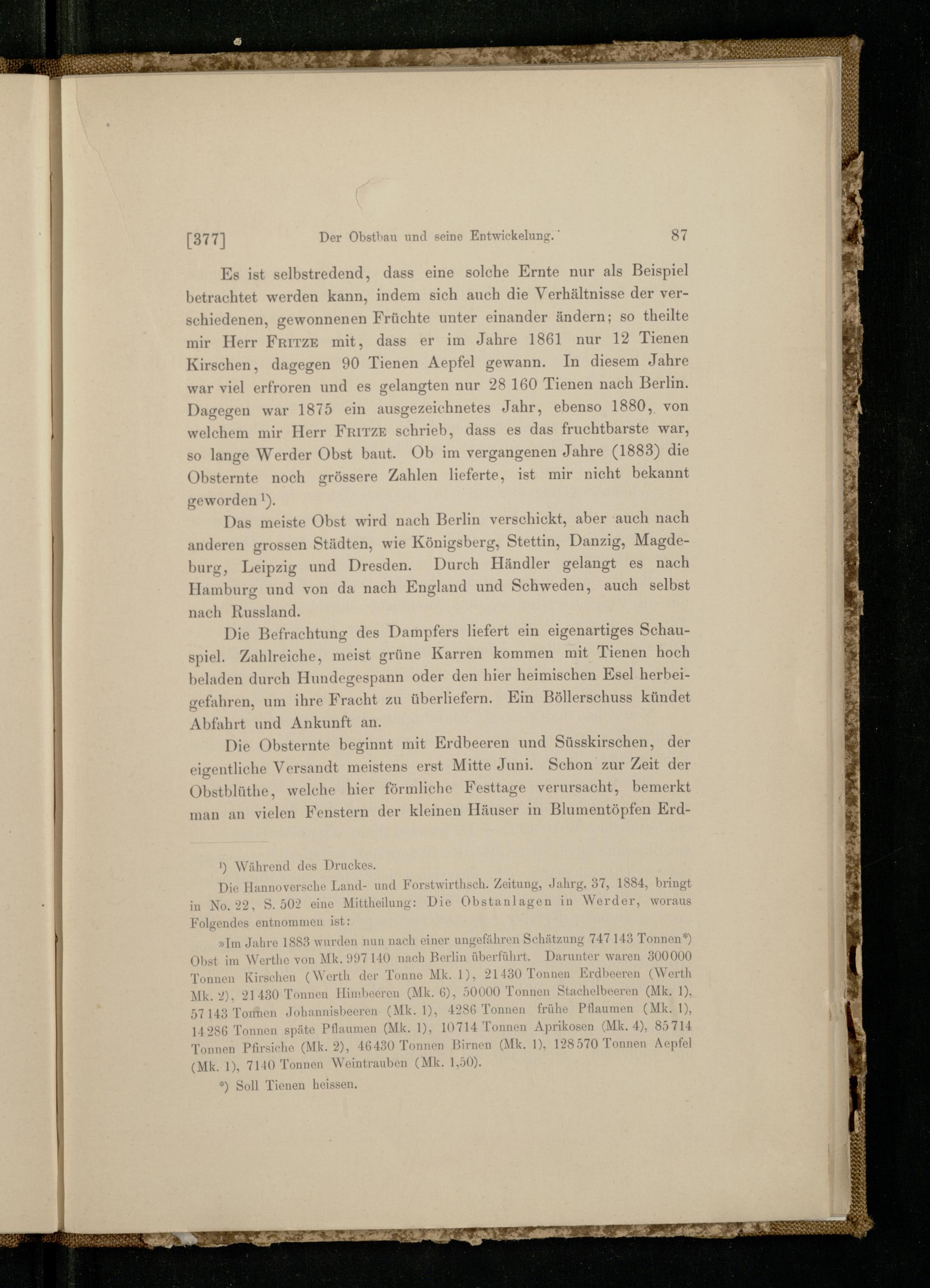 so lange Werder Obst baut. Ob im vergangenen Jahre(1883) die Obsternte noch grössere Zahlen lieferte, ist mir nicht bekannt