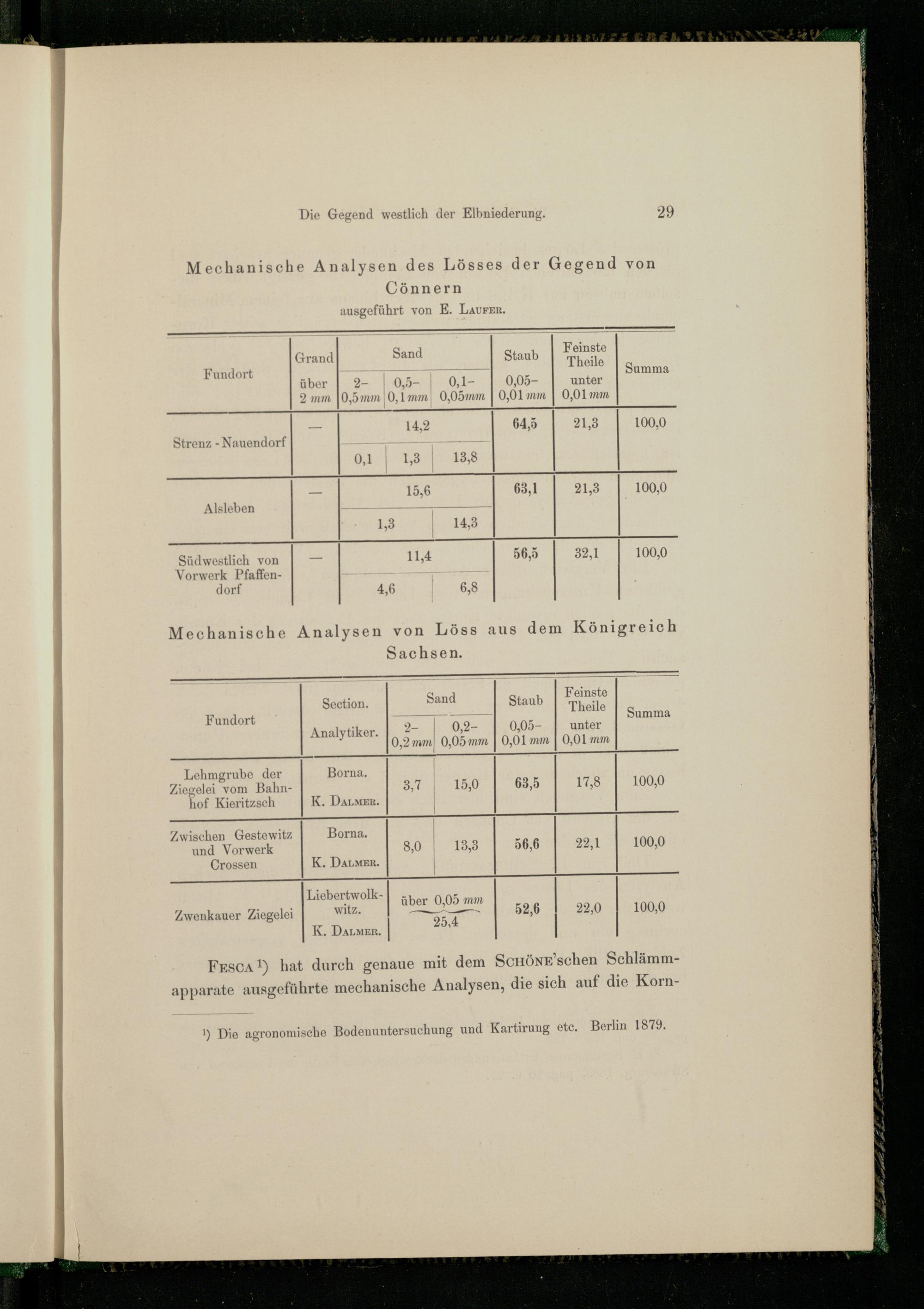 Mechanische Analysen des Lösses der Gegend von Cönnern ausgeführt von E. LaurFER.