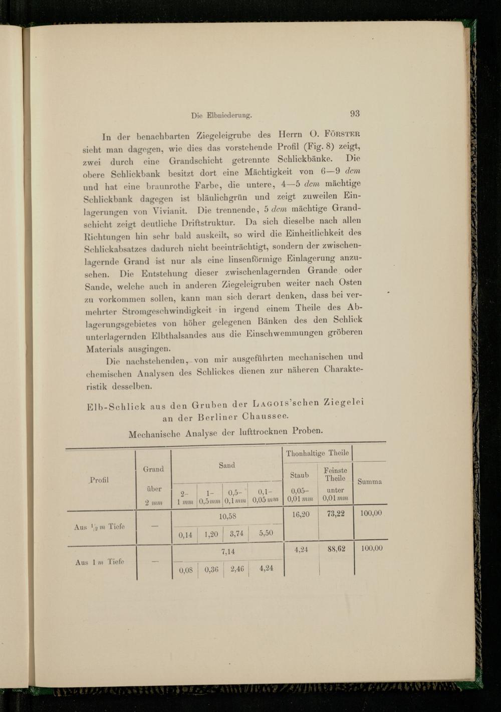 Die nachstehenden. von mir ausgeführten mechanischen und chemischen Analysen des Schlicekes dienen zur näheren Charakteristik desselben.