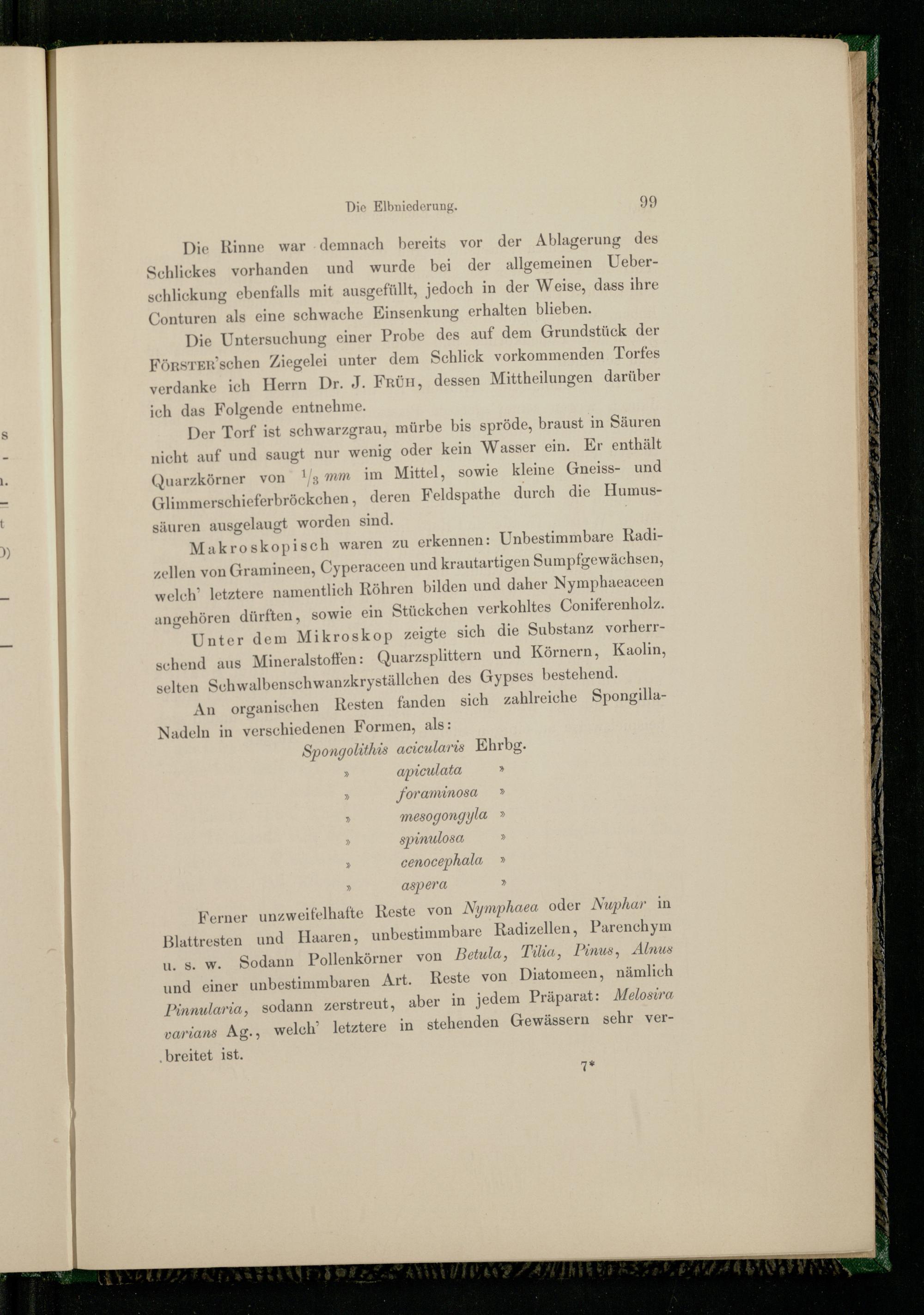 Die Untersuchung einer Probe des auf dem Grundstück der FörsTER’schen Ziegelei unter dem Schliek vorkommenden Torfes verdanke ich Herrn Dr. J. FRÜH, dessen Mittheilungen darüber ich das Folgende entnehme.