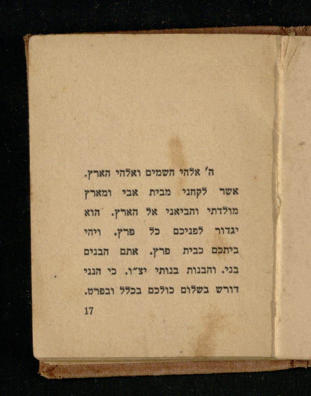אשר לקחני מבית אבי ומארץ מולדתי והביאני אל הארץ. הוא יגדור לפניכם כל פרץ. ויהי