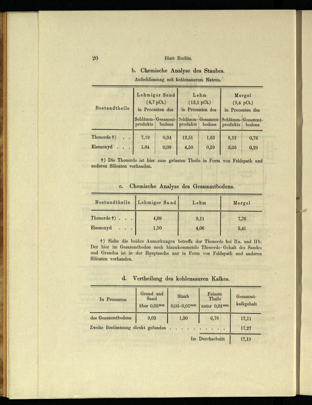 +) Siehe die beiden Anmerkungen betreffs der Thonerde bei IIa. und ITb. Der hier im Gesammtboden noch hinzukommende Thonerde- Gehalt des Sandes