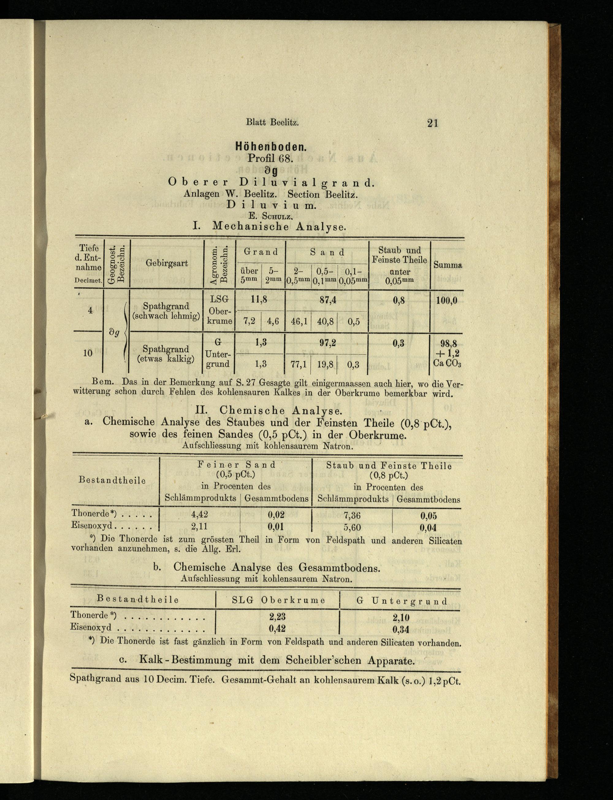 Höhenboden. Profil 68. Ög Oberer Diluvialgrand. Anlagen W. Beelitz. Section Beelitz. D iluwium. E. SornuLz,