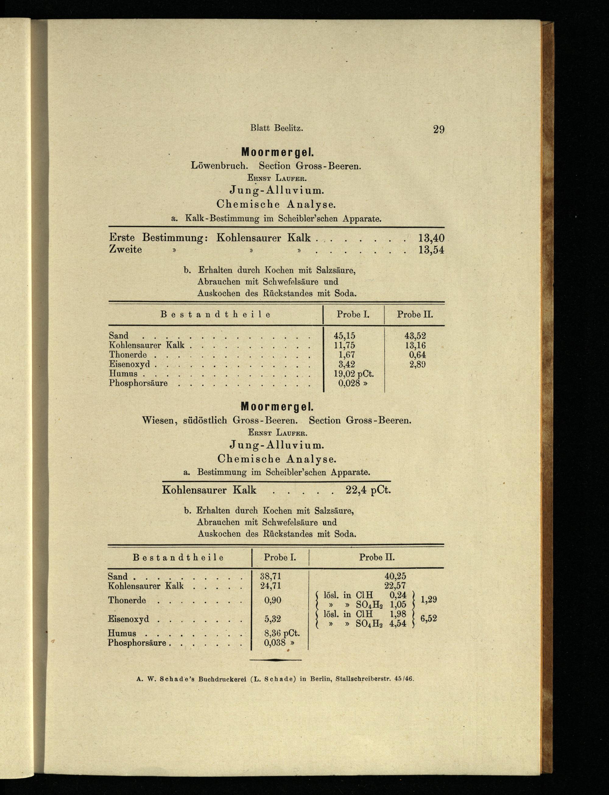 Löwenbruch. Section Gross- Beeren. Erst Laurer. Jung-Alluvium. Chemische Analyse.