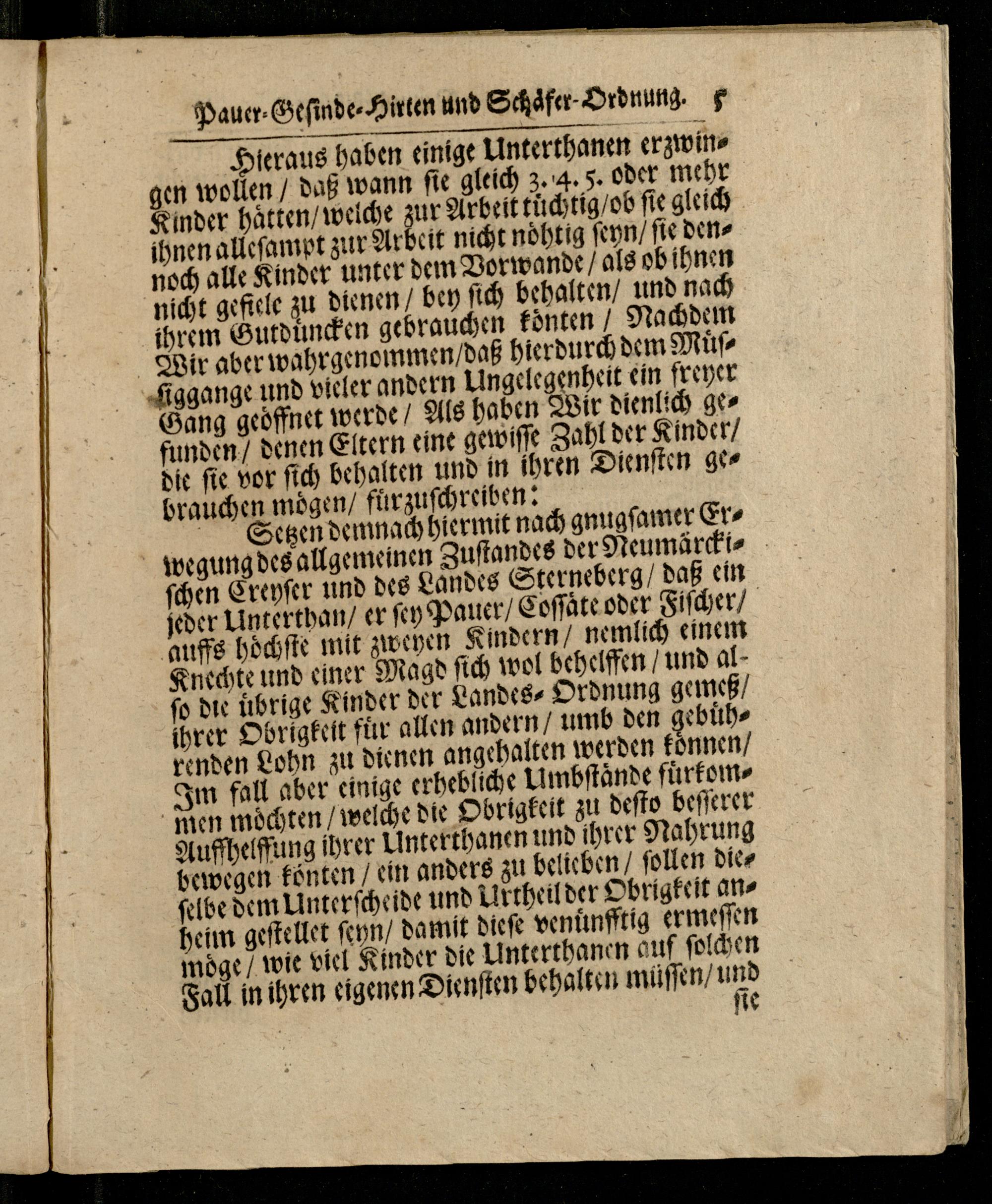 Pauer-Geſinde- Hirten und Schafer- Ordnung. f